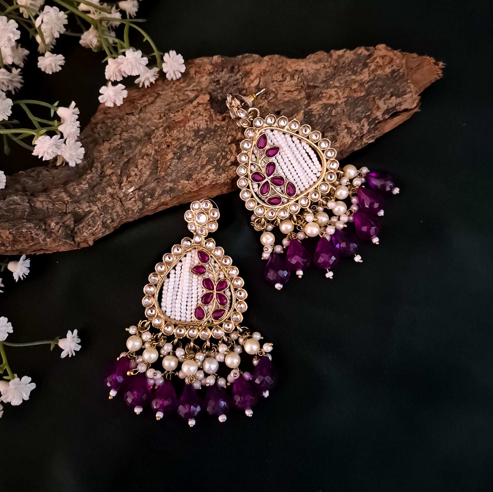 Mehvish Jadau Reverse AD Jhumka Earrings with Earchain - Lavender