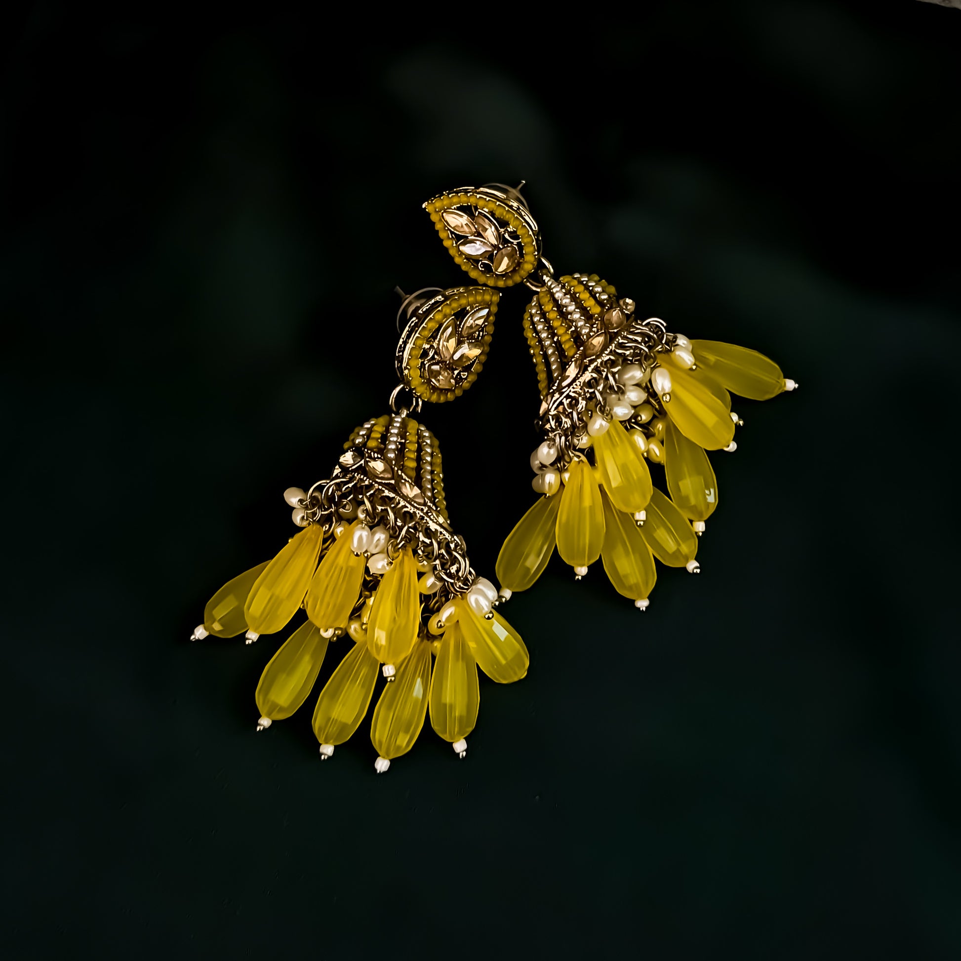 Maheer Jadau Jhumka Earrings - Yellow
