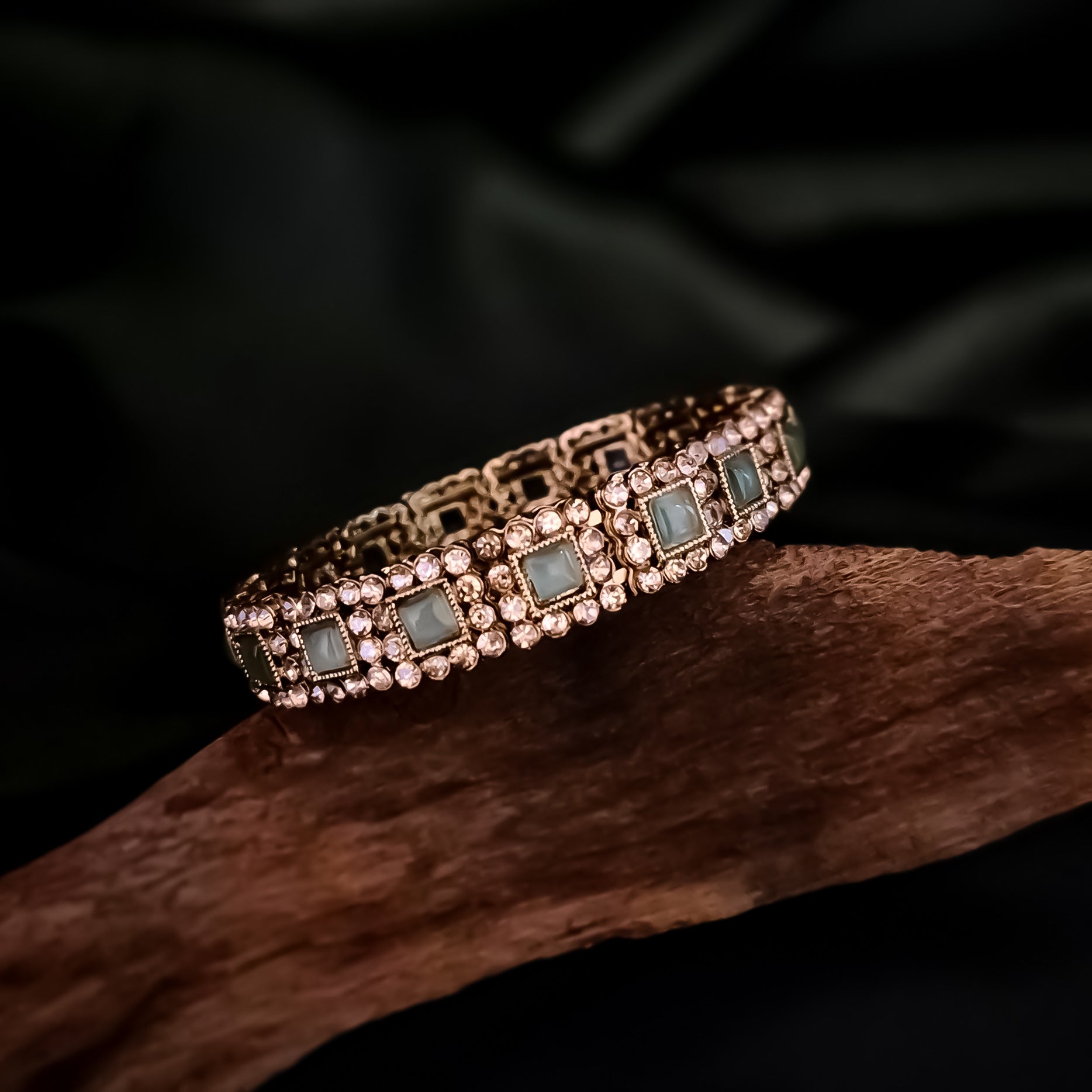 Manvika Kundan Openable Bangle/Kada - Pastel Green