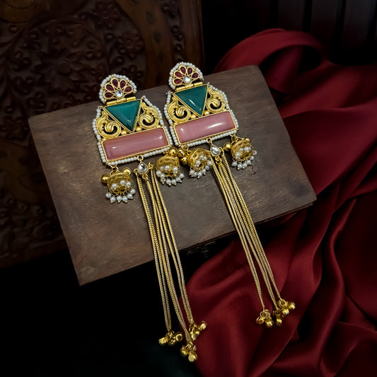 Nishita Premium Kashmiri Brass Ghungroo Dejhoor Earrings - Pastel Pink