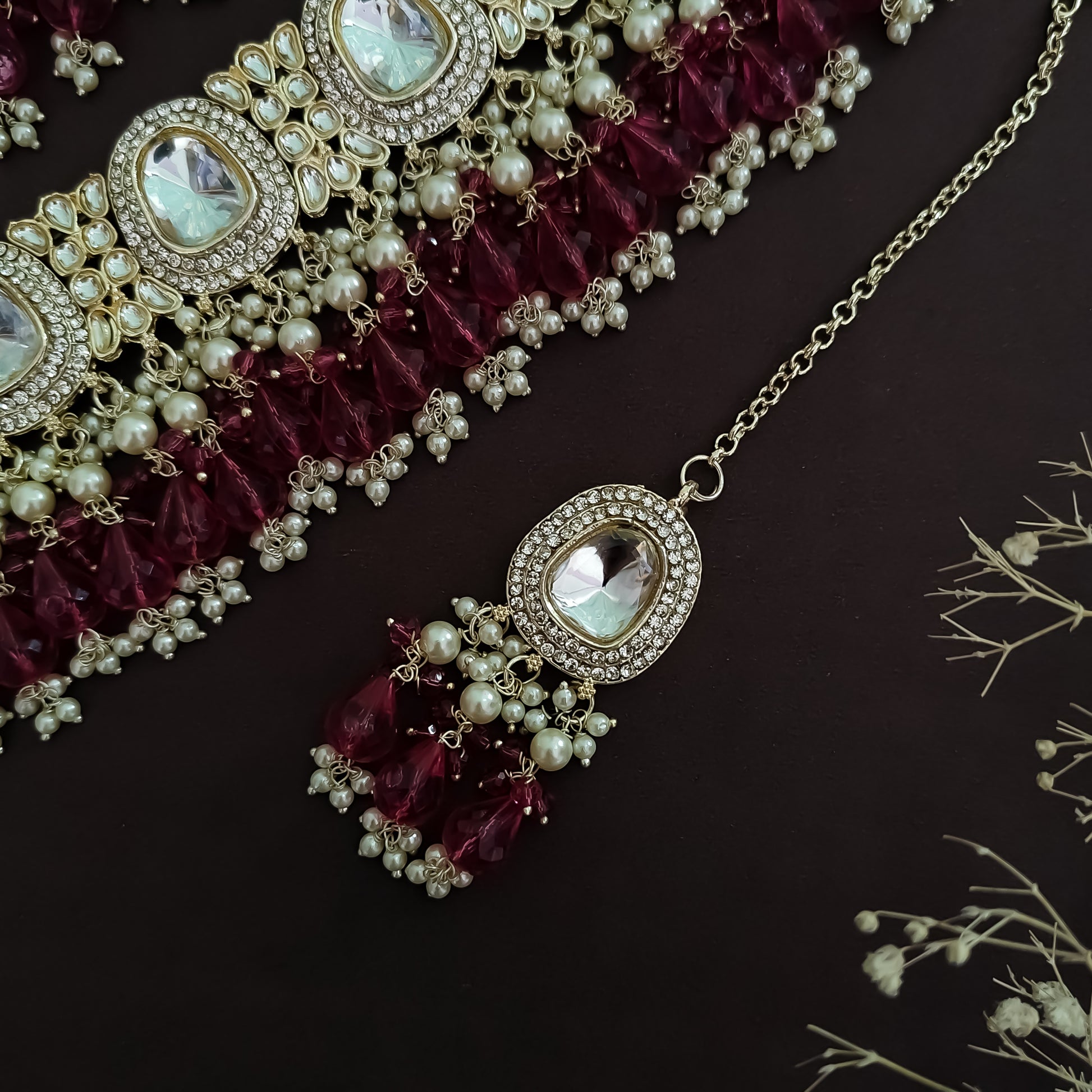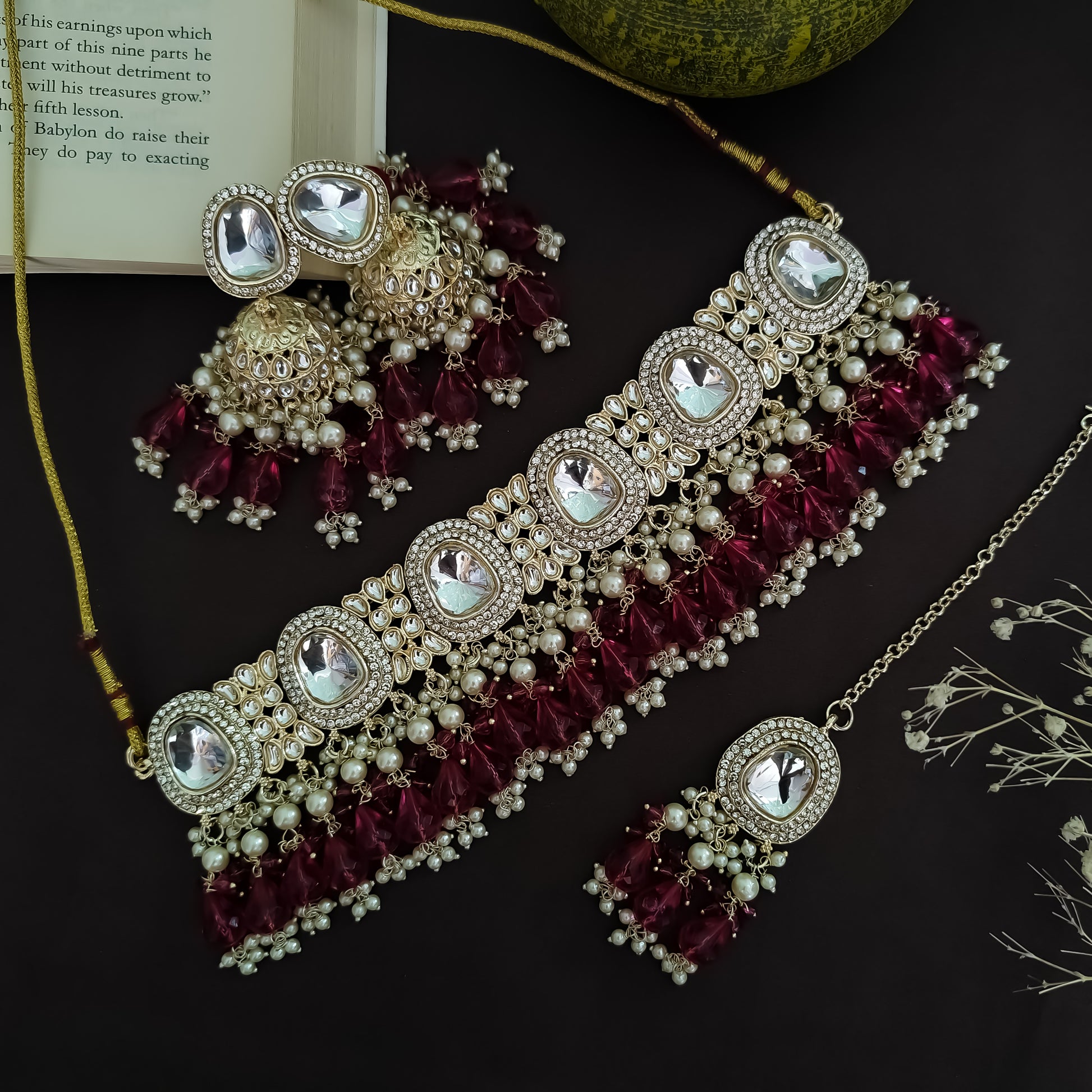 The Anika Necklace sounds exquisite! With its polki design and pearls adorning the bottom, it undoubtedly adds a touch of elegance and sophistication. Moreover, the inclusion of earrings and a mangtika completes the ensemble, ensuring a cohesive and stunning look. Such traditional jewelry pieces are often cherished for their timeless beauty and cultural significance.