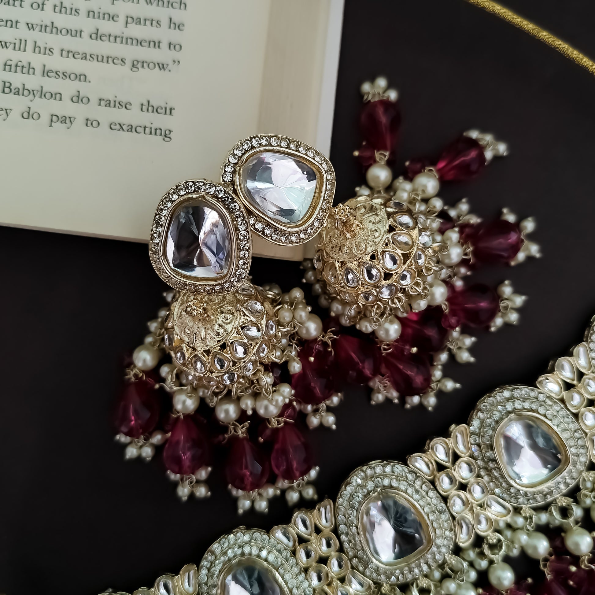 Kashish Jadau Mirror Jhumka Earrings with Sahara/Earchains - Golden