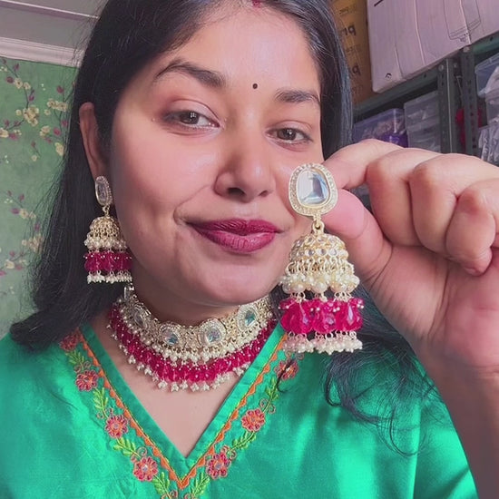 Kashish Jadau Mirror Jhumka Earrings with Sahara/Earchains - Multi