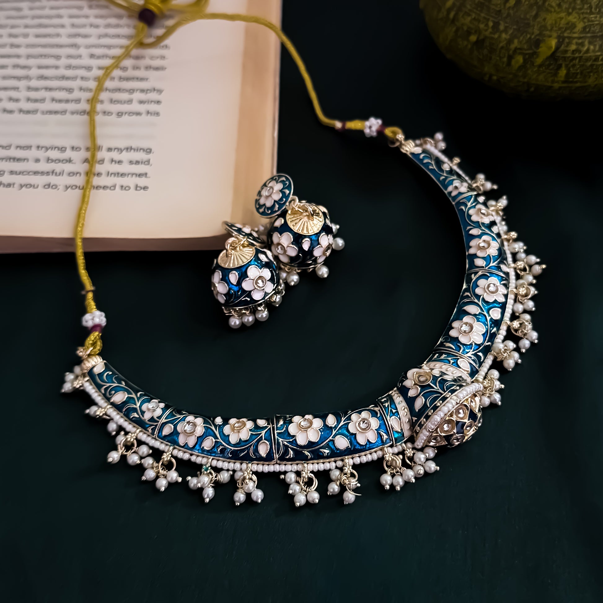 Drishti Meenakari Hasli Necklace Set - Peacock Blue