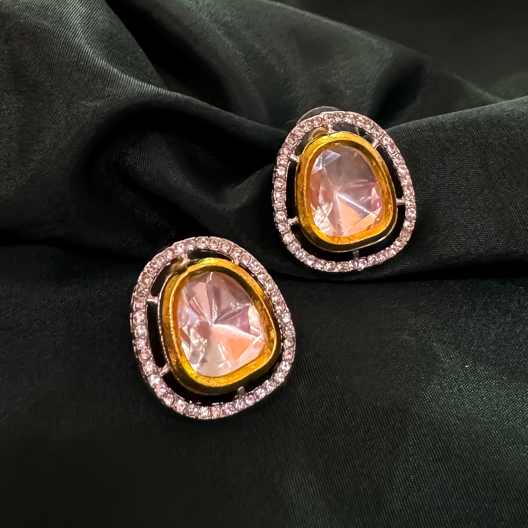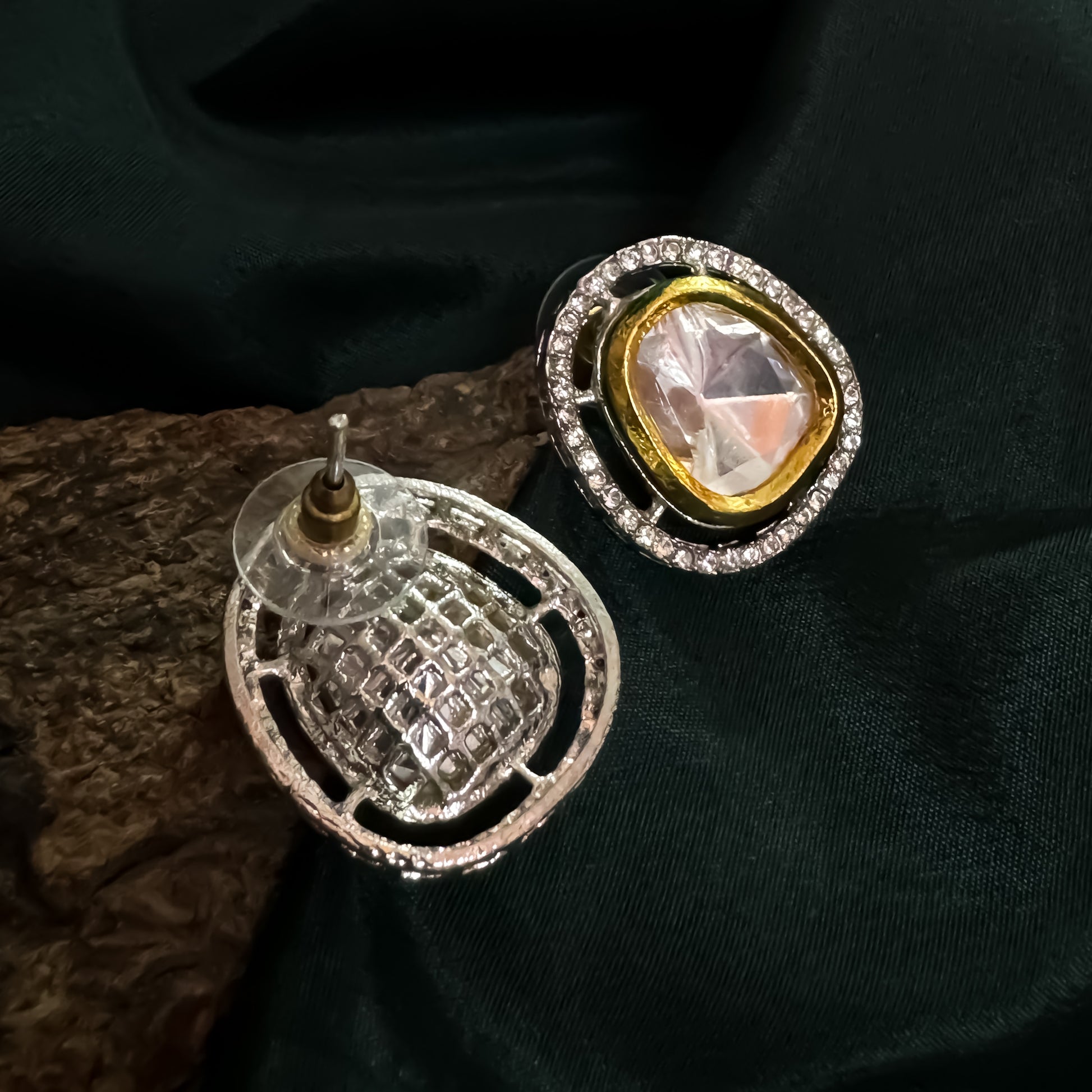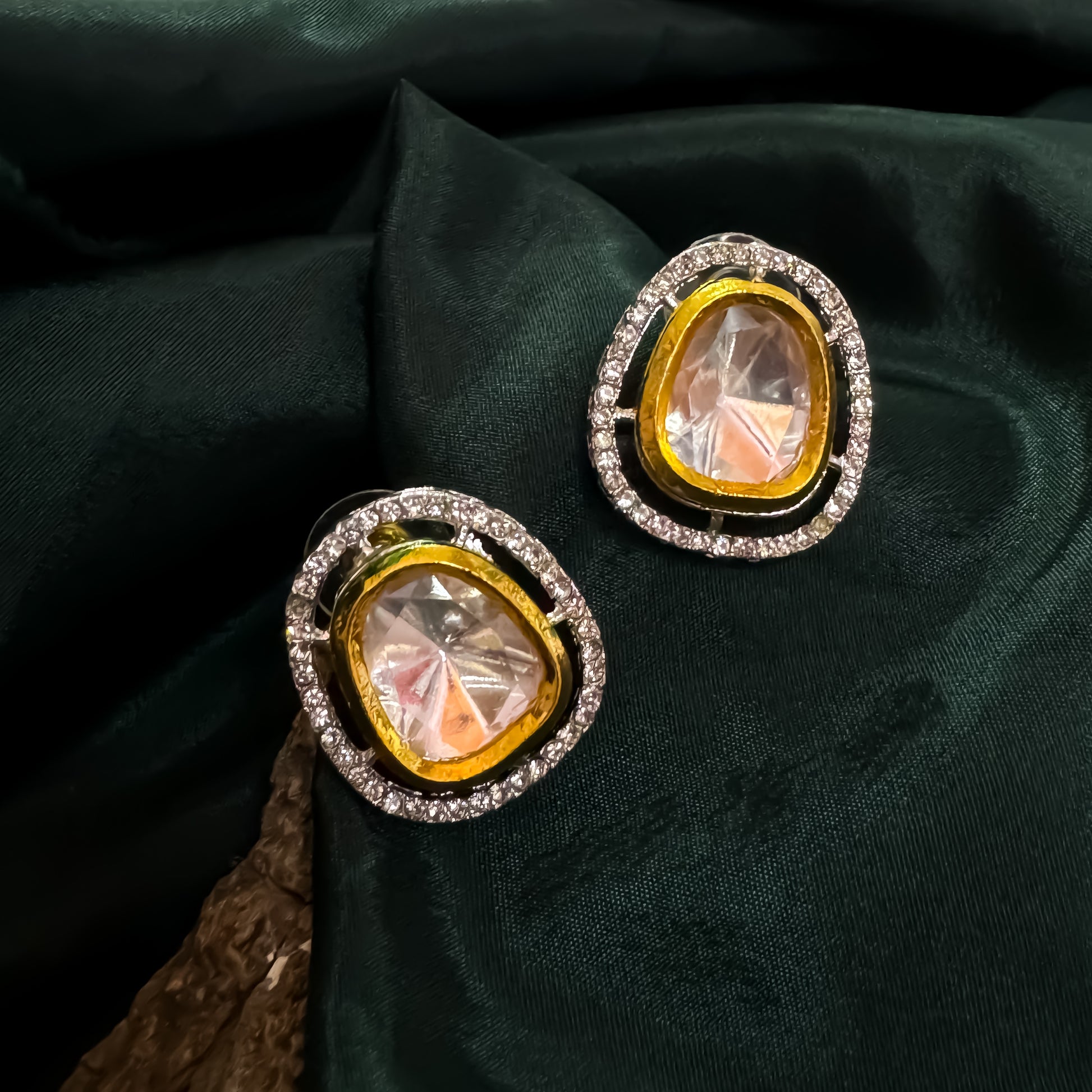 Elegantly handcrafted in a vintage Victorian style, these studs feature uncut Polki stones surrounded by shimmering cubic zirconia for irresistible brilliance. Set in gold‑plated sterling silver on push‑back fittings, they offer lightweight comfort.
