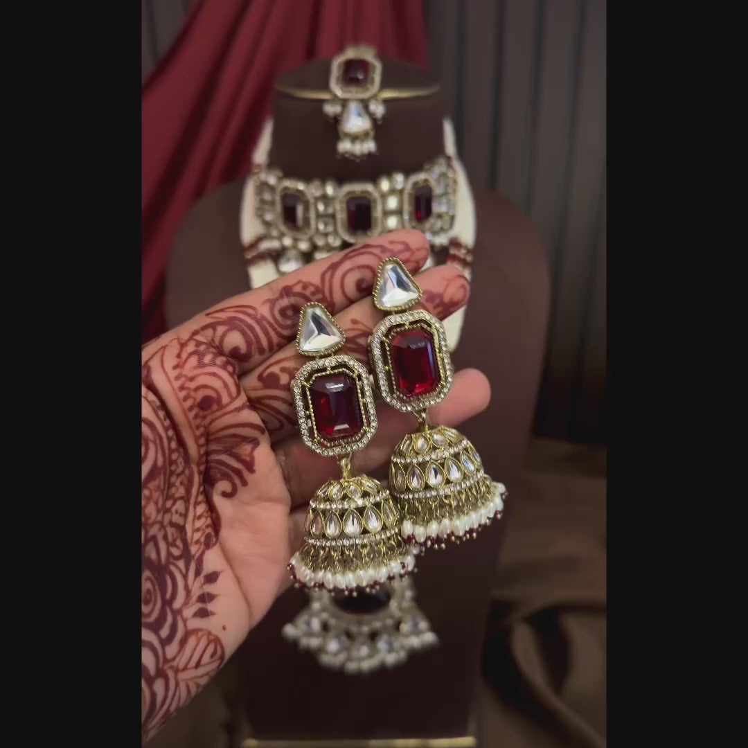 Mandana Kundan Chandbali Earrings - Maroon