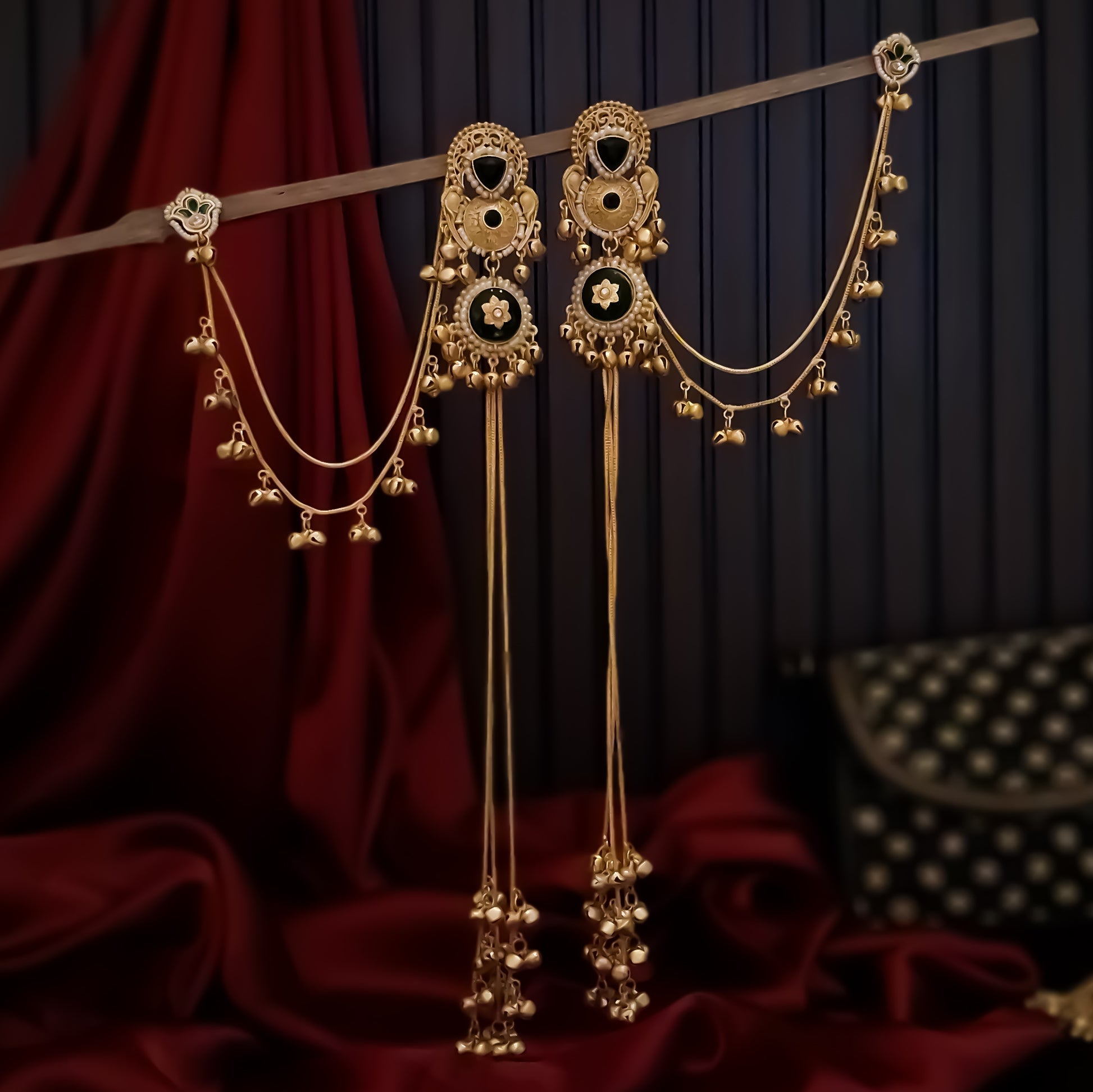 Chaya Premium Kashmiri Matte Polish Ghungroo Earrings - Ruby