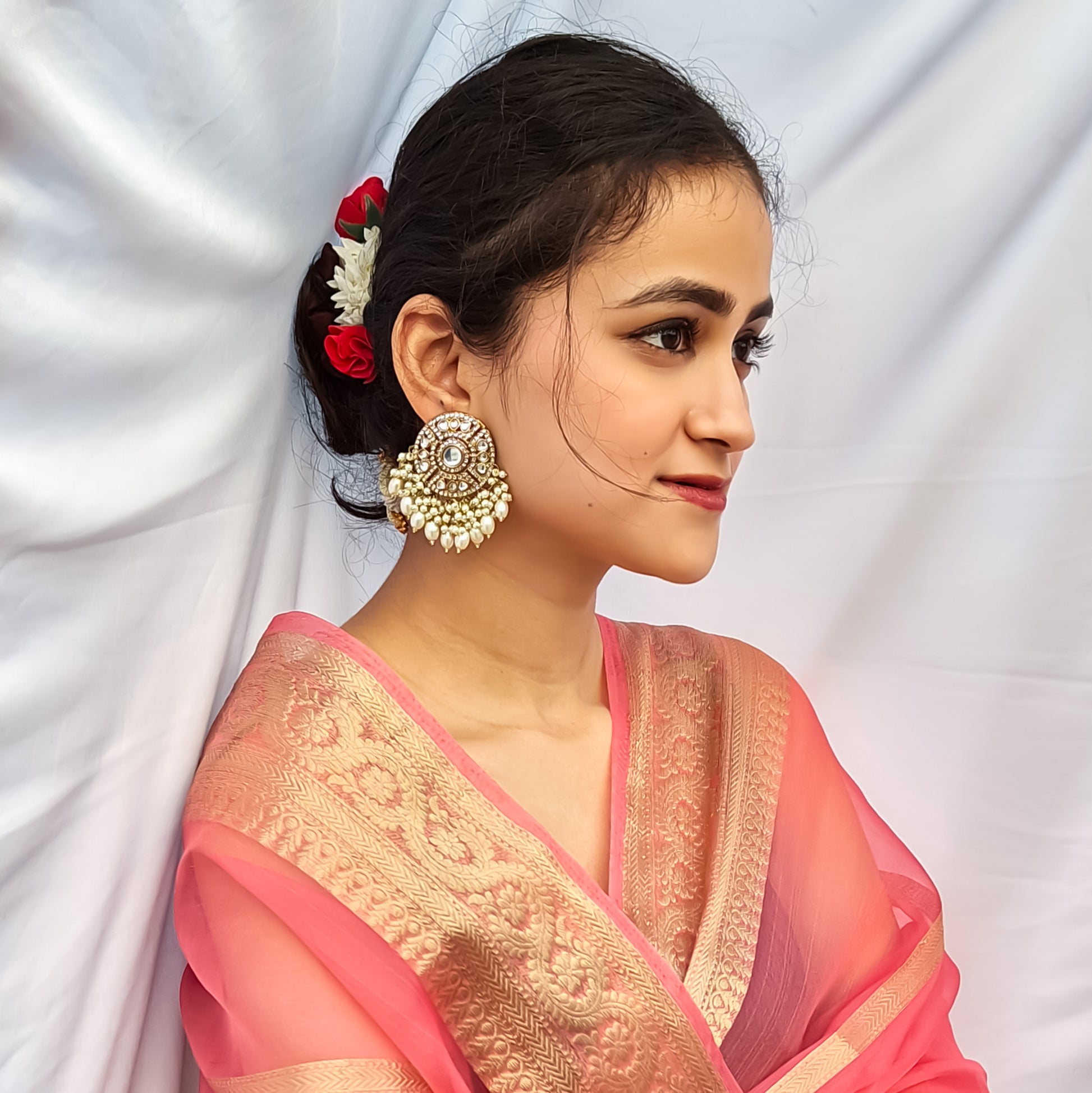 The Jiya Dabi Kundan Earrings in Golden are a versatile accessory that can be paired with traditional Indian attire. One of the standout features of these earrings is the golden pearls that dangle gracefully from the bottom. These lustrous pearls not only enhance the beauty of the earrings but also provide movement and charm.