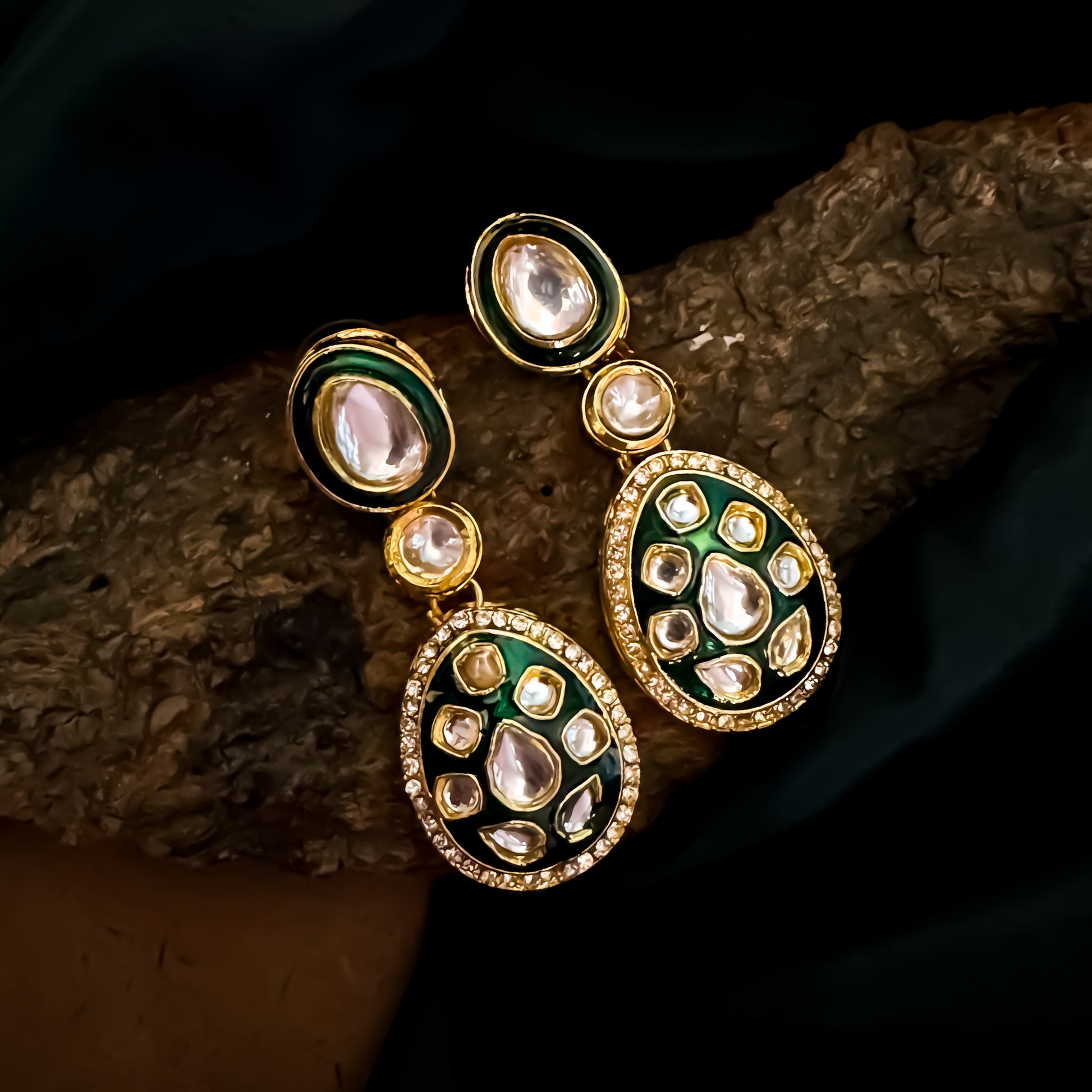 Kashi Kundan Jhumka Earrings with Sahara/Earchains - Green