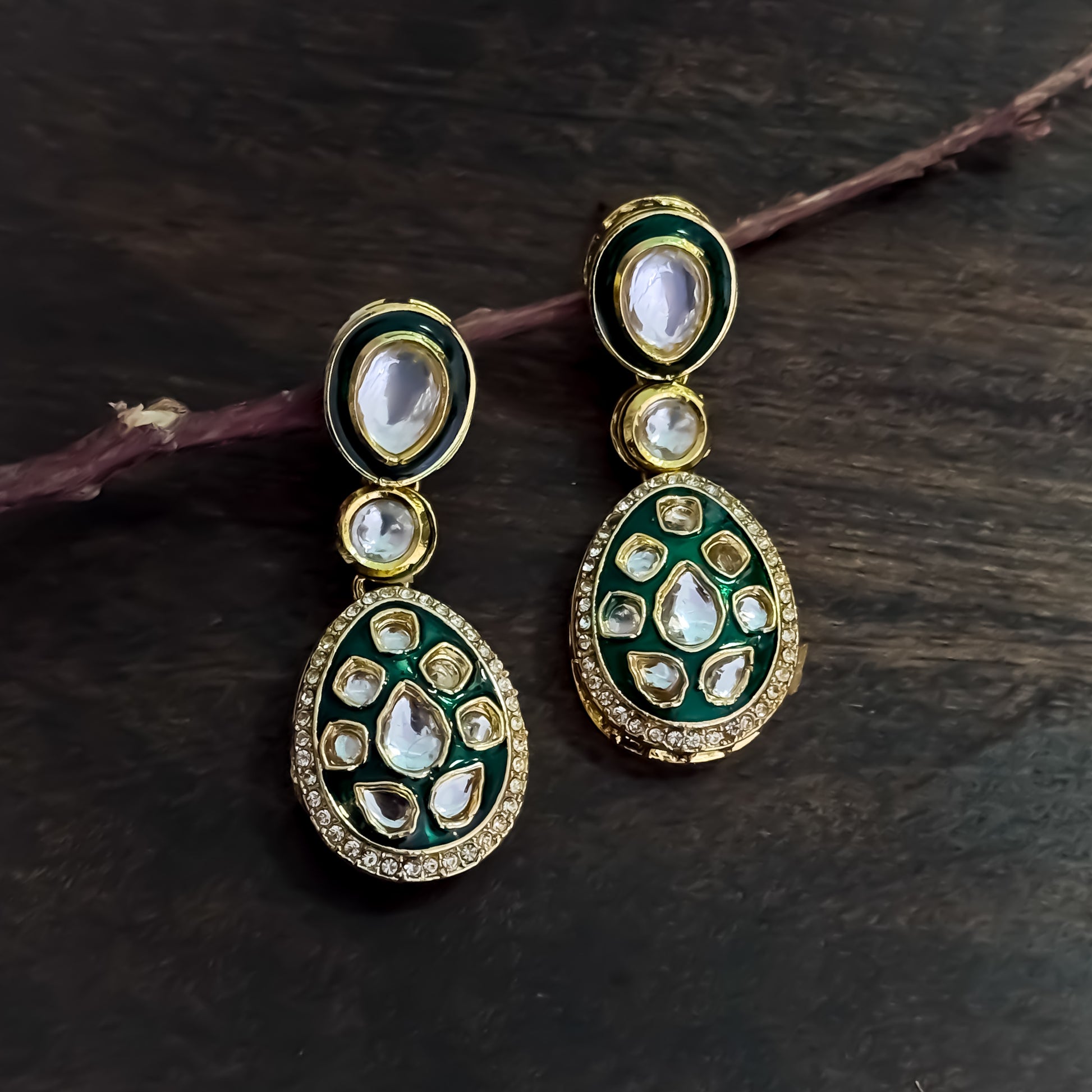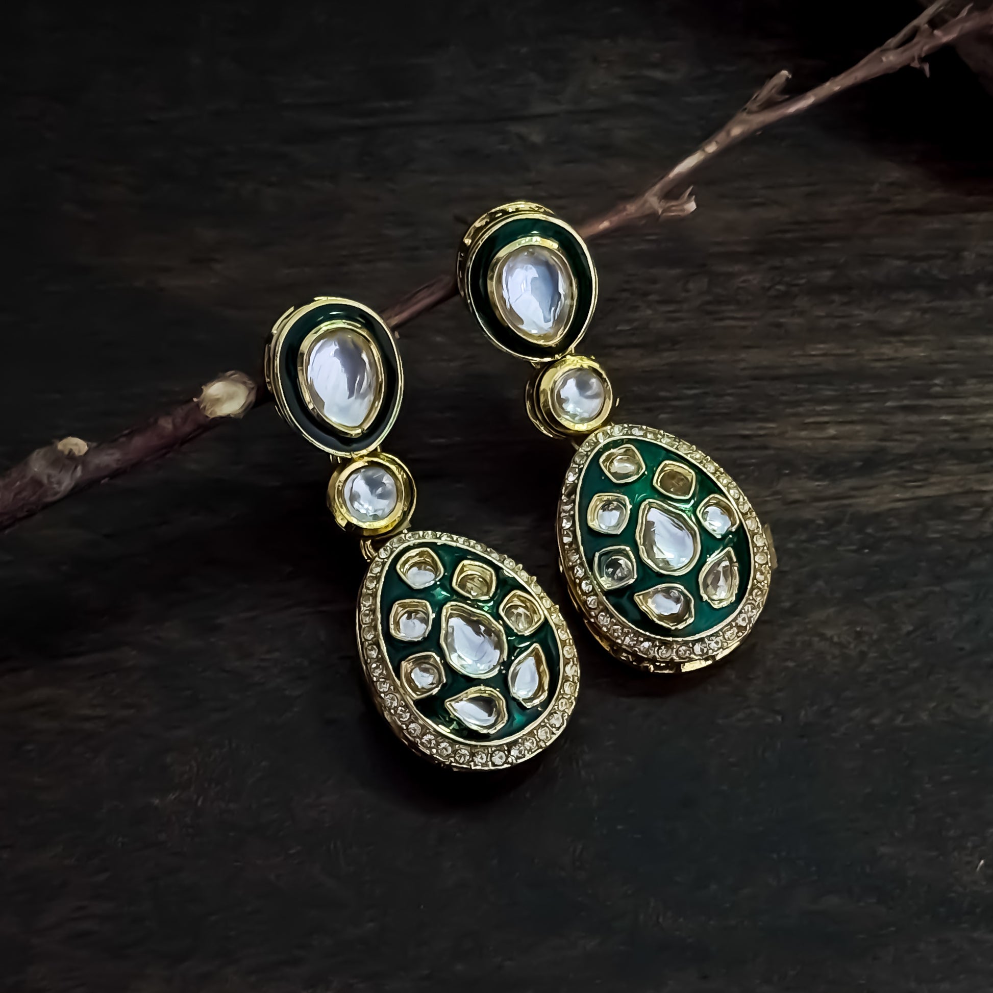 Elevate your elegance with our Kismat Kundan Earrings. Crafted with intricate kundan work, these earrings exude timeless charm and grace, perfect for adding a touch of luxury to any outfit.