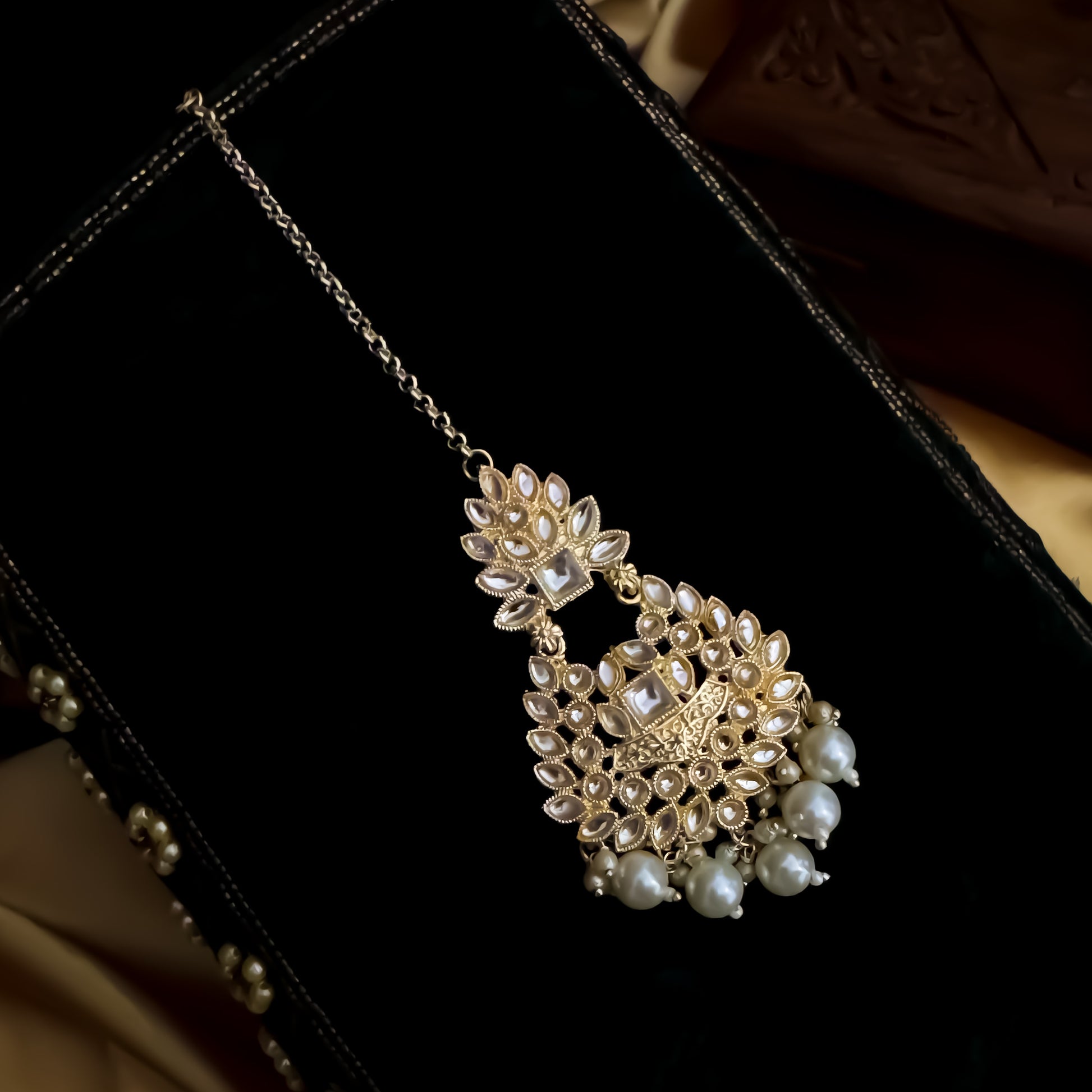 Kumudini Kundan Pearl Maang Teeka - Golden