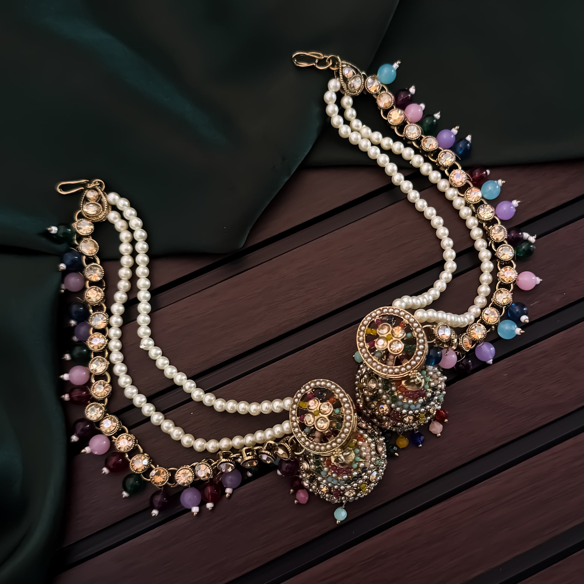Lasika Jadau Jhumka Earrings with Sahara/Earchains - Multi