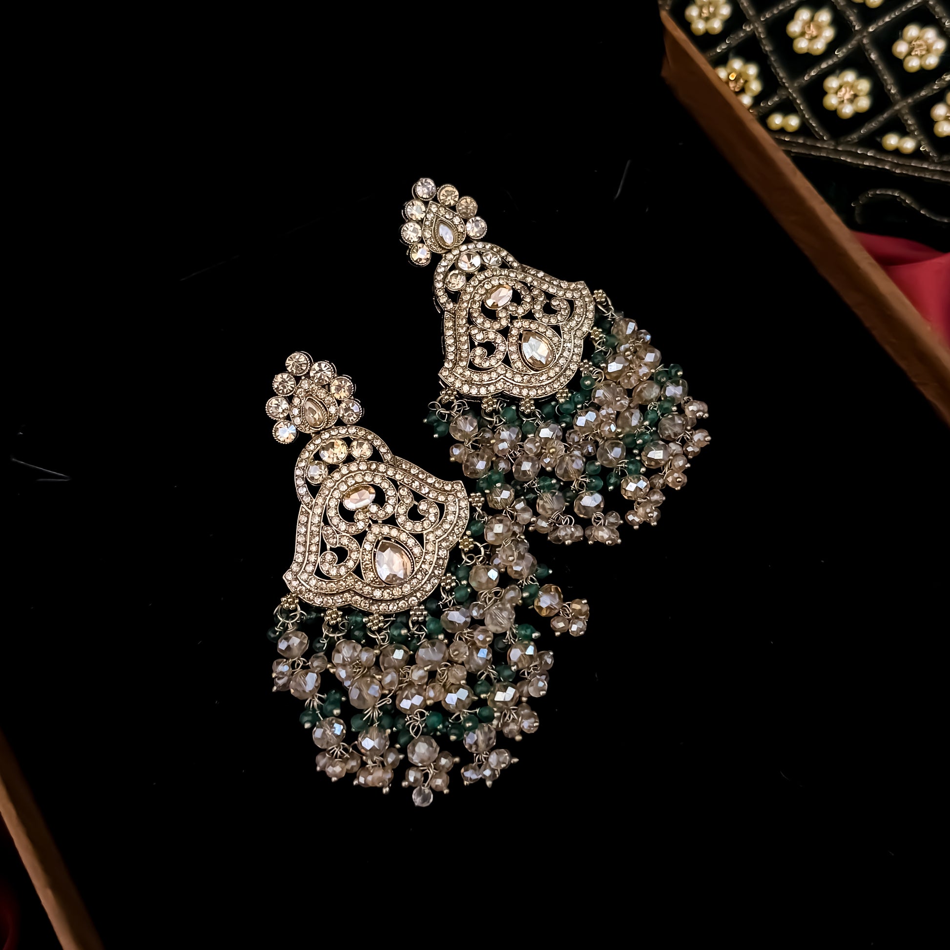 Mandana Kundan Chandbali Earrings - Mehendi Green