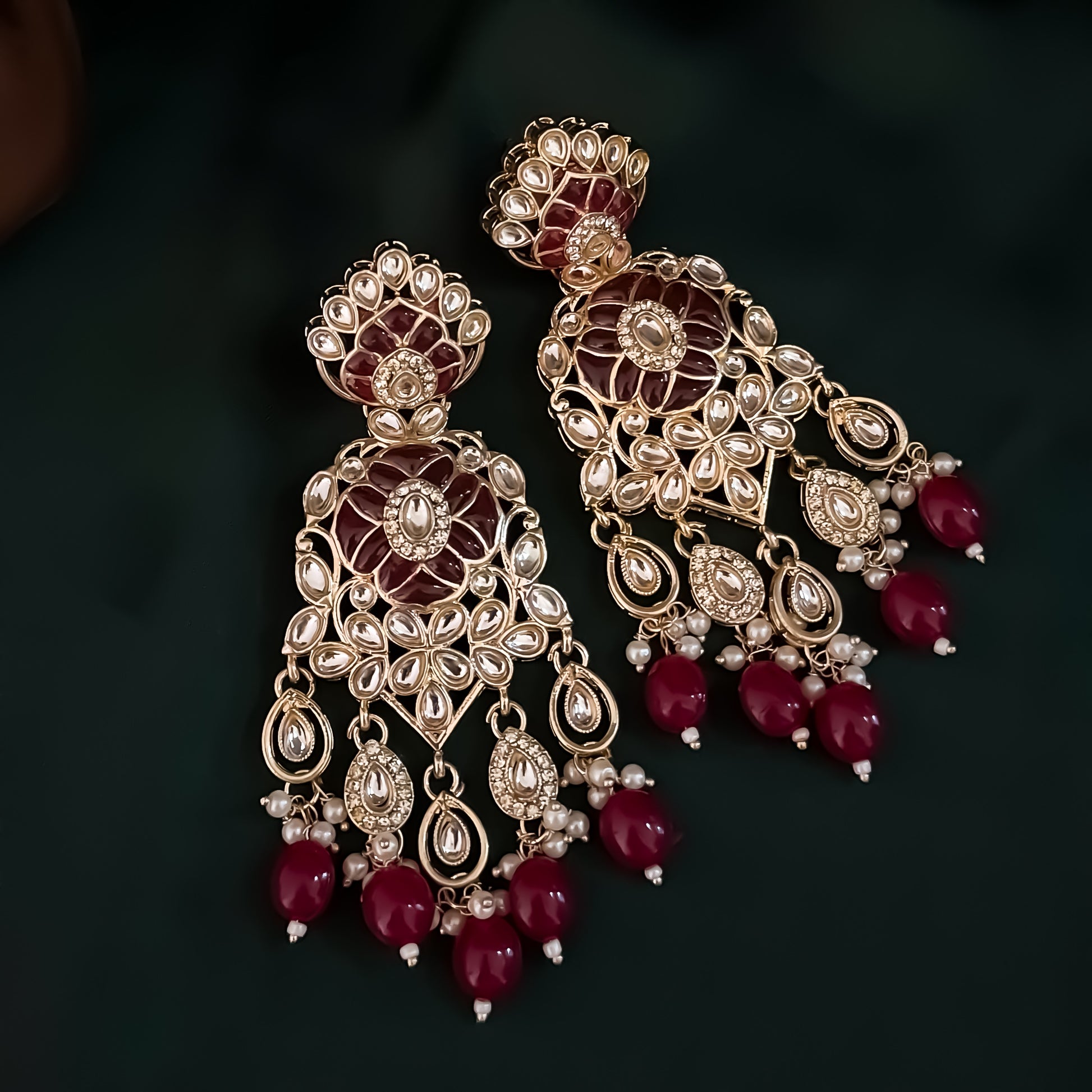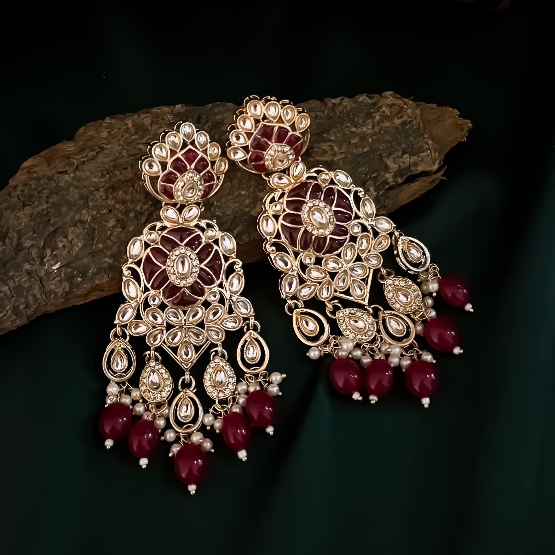 Mandana Kundan Chandbali Earrings - Wine