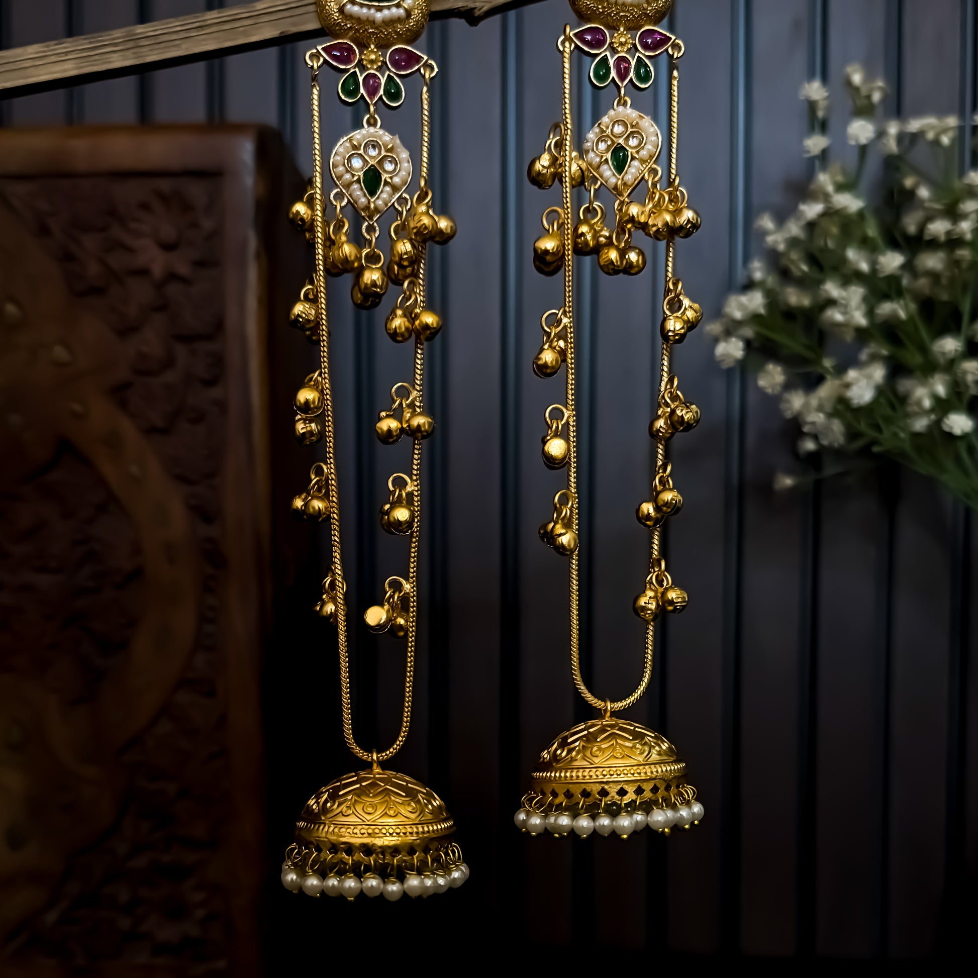 Kashi Kundan Jhumka Earrings with Sahara/Earchains - Golden