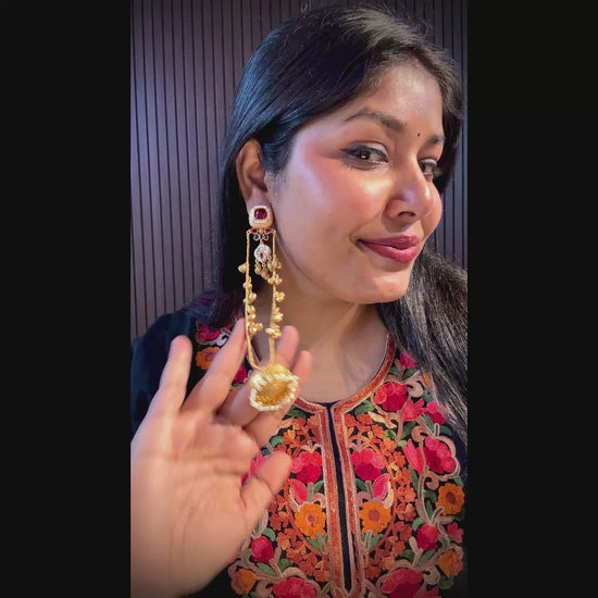 Kashi Kundan Jhumka Earrings with Sahara/Earchains - Golden