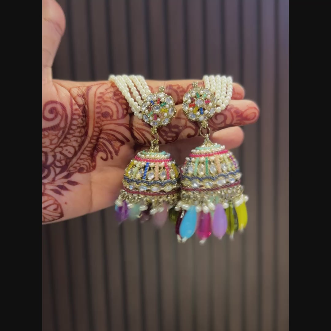 Kashish Jadau Mirror Jhumka Earrings with Sahara/Earchains - Multi