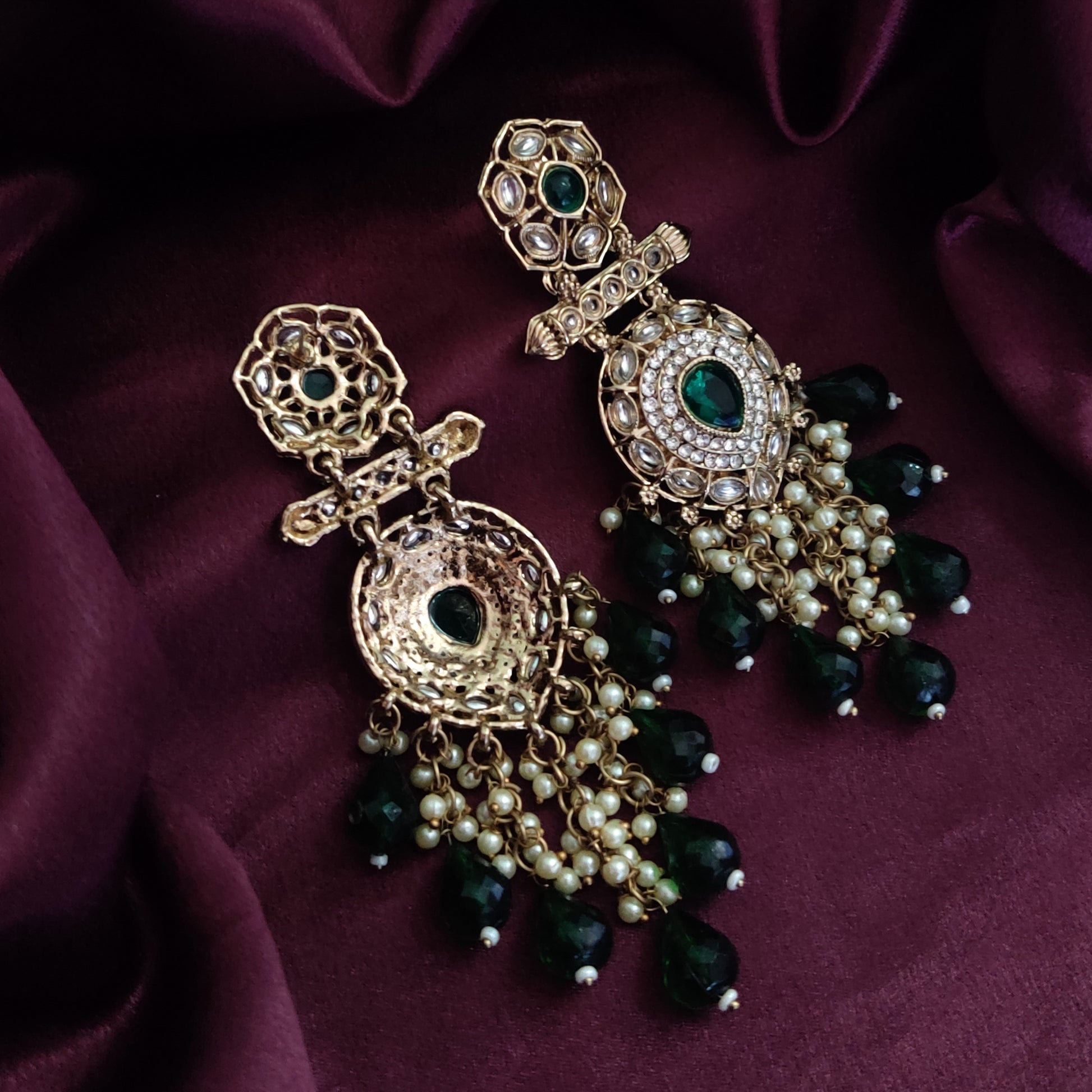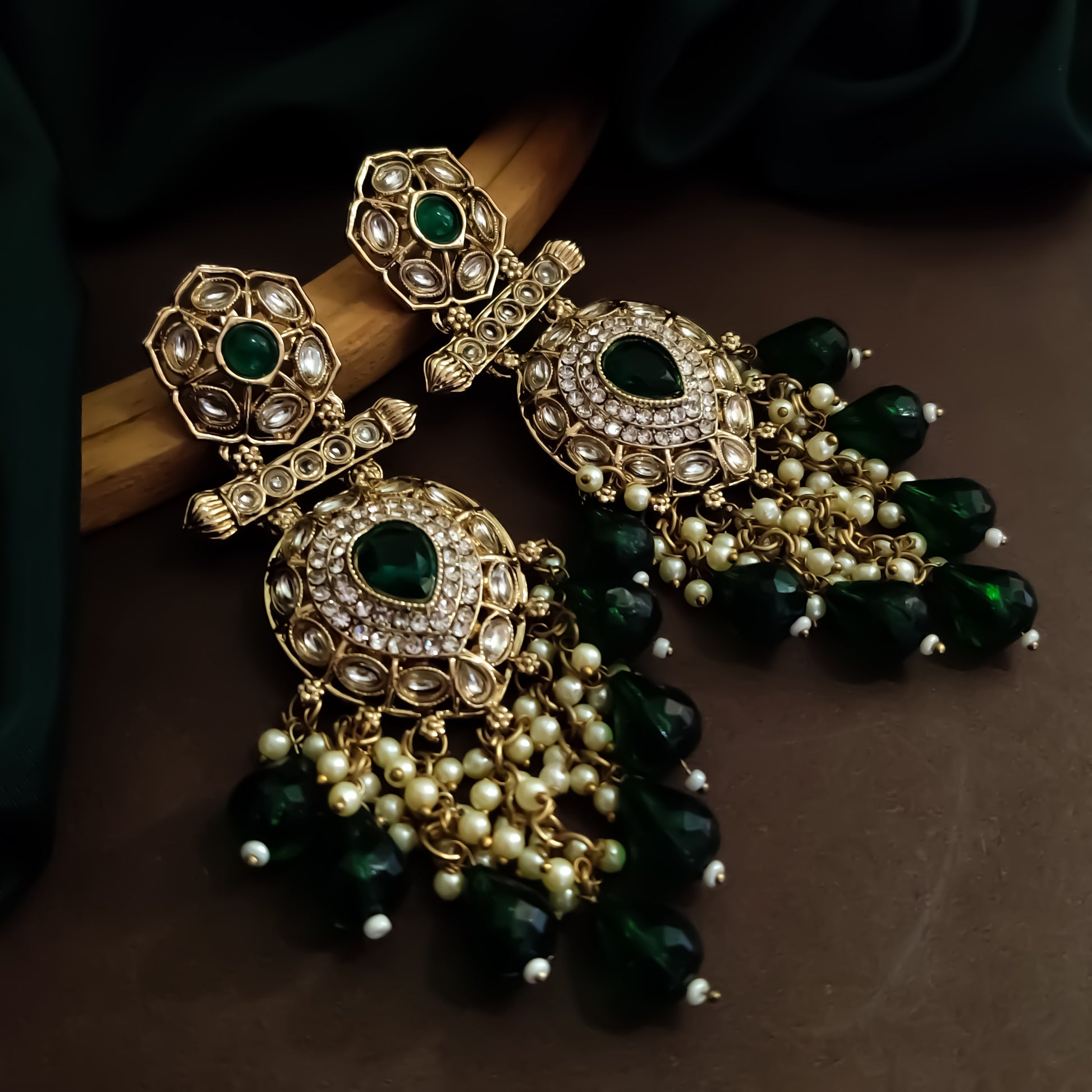 Mihika Kundan Chandbali Earrings - Emerald Green
