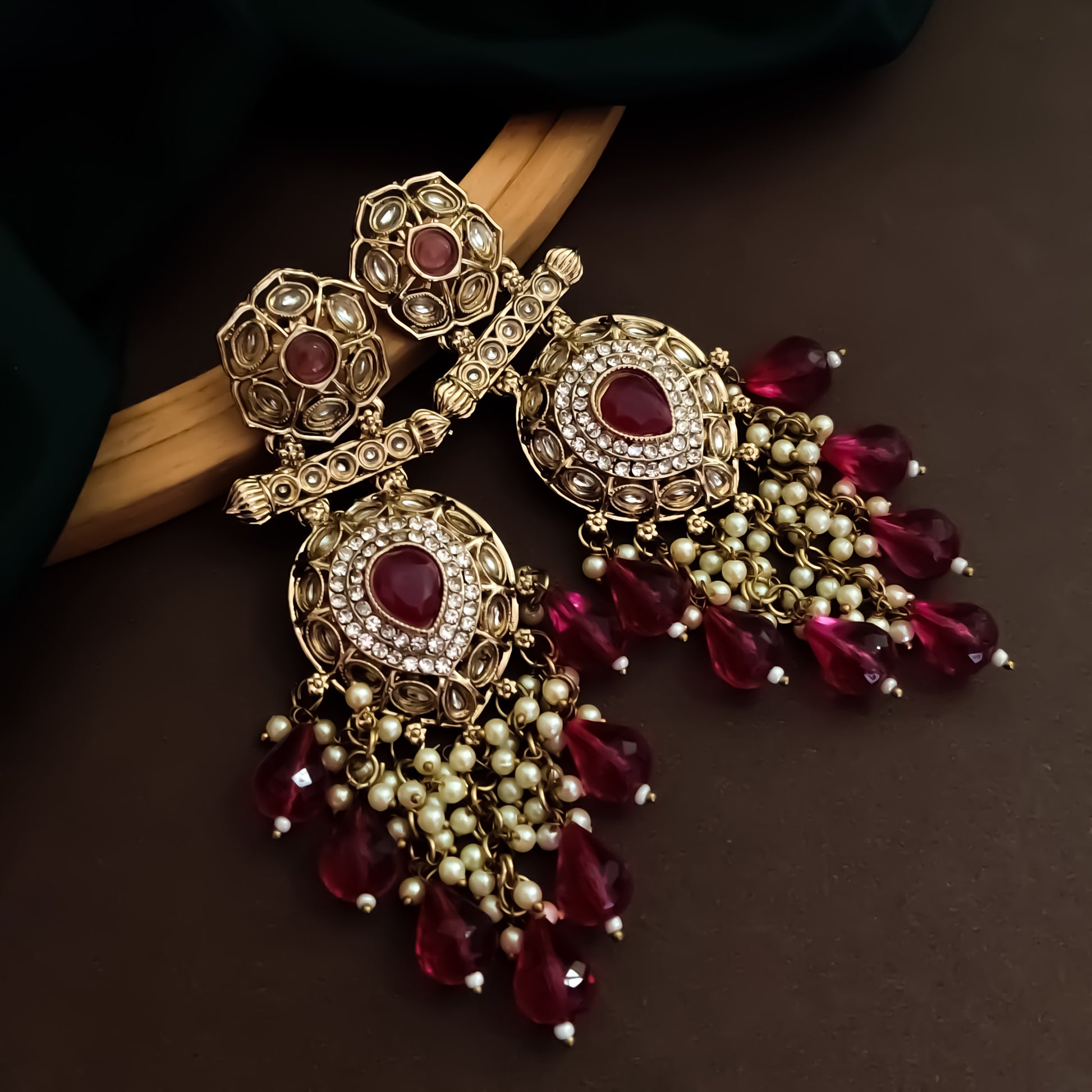 Rani Padmavat Jadau Jhumka Earrings with Sahara & Teeka - Multi