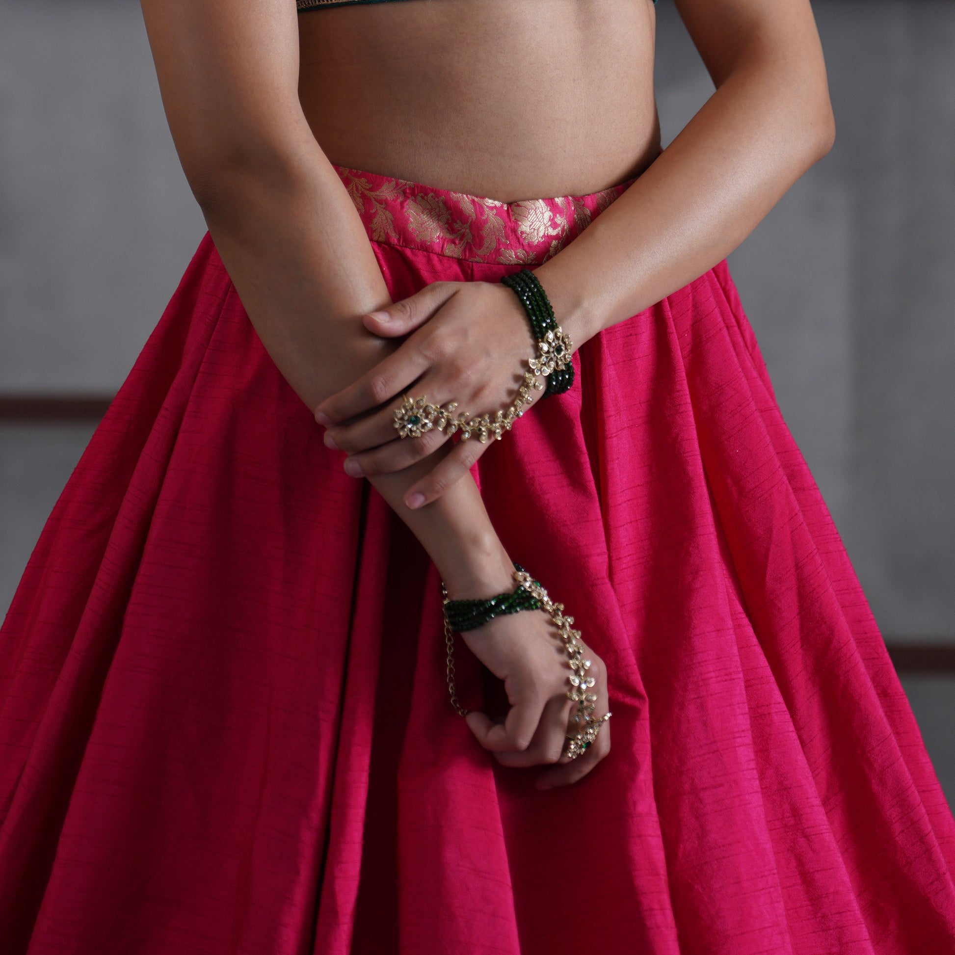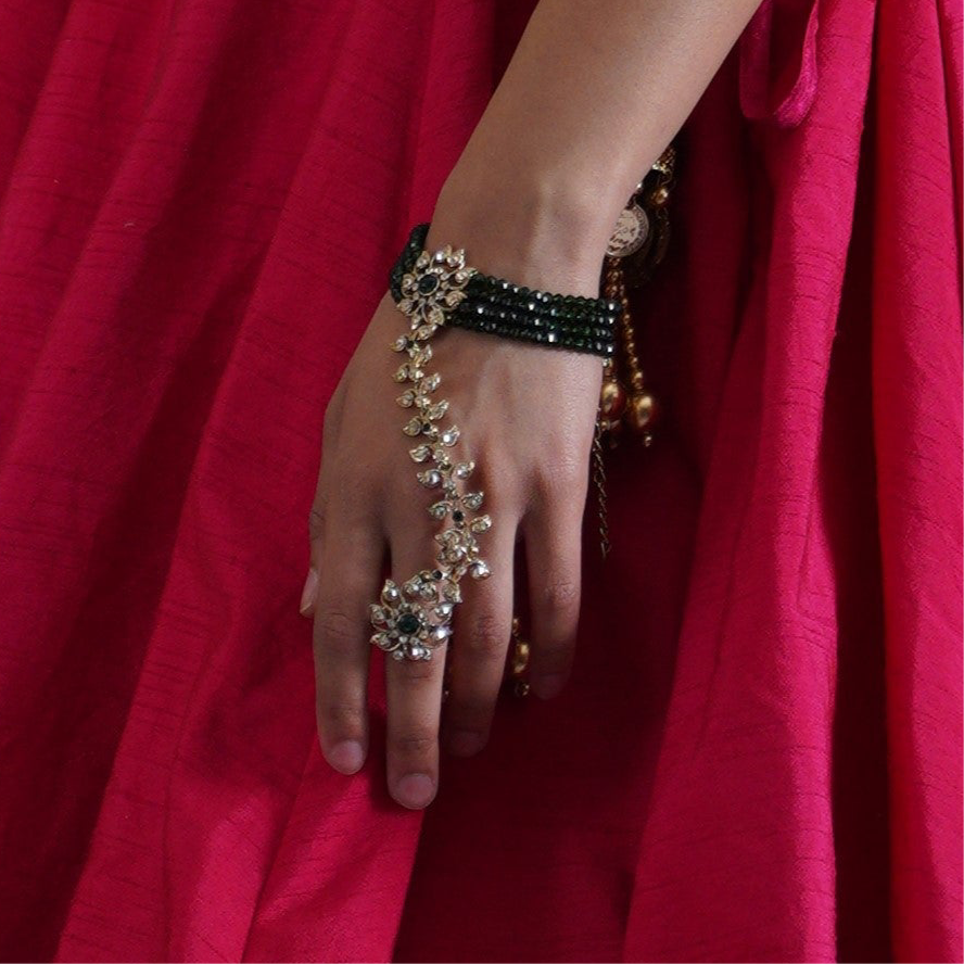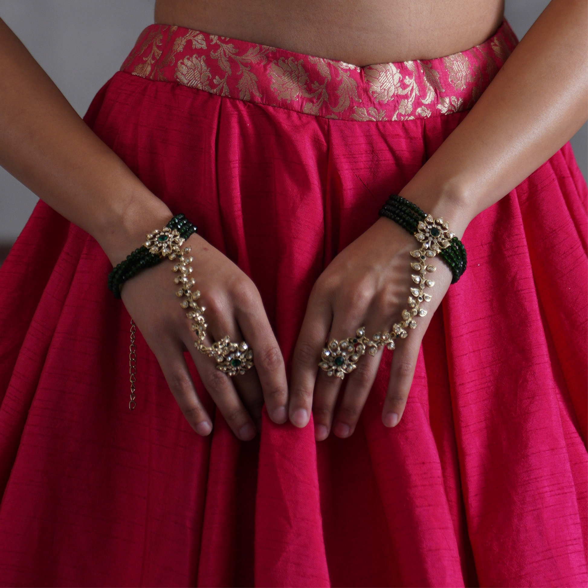 Neerja Premium Reverse AD Haathphool - Golden & Green