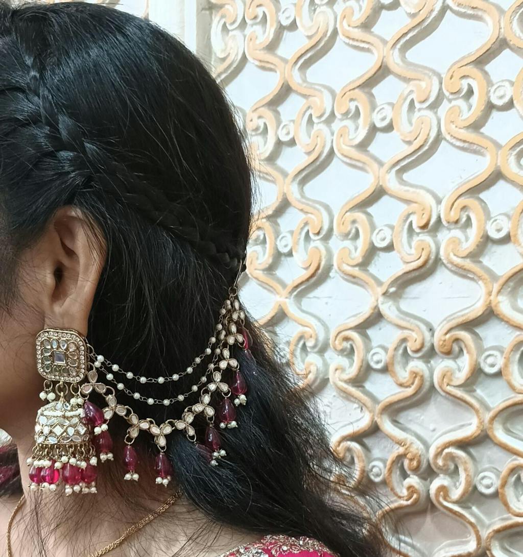Kashi Kundan Jhumka Earrings with Sahara/Earchains - Golden