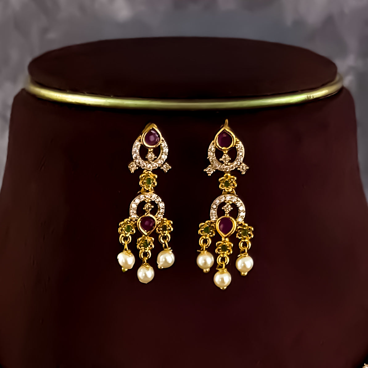 Saira Pearl Peacock Chandbali Earrings with Sahara/Earchains