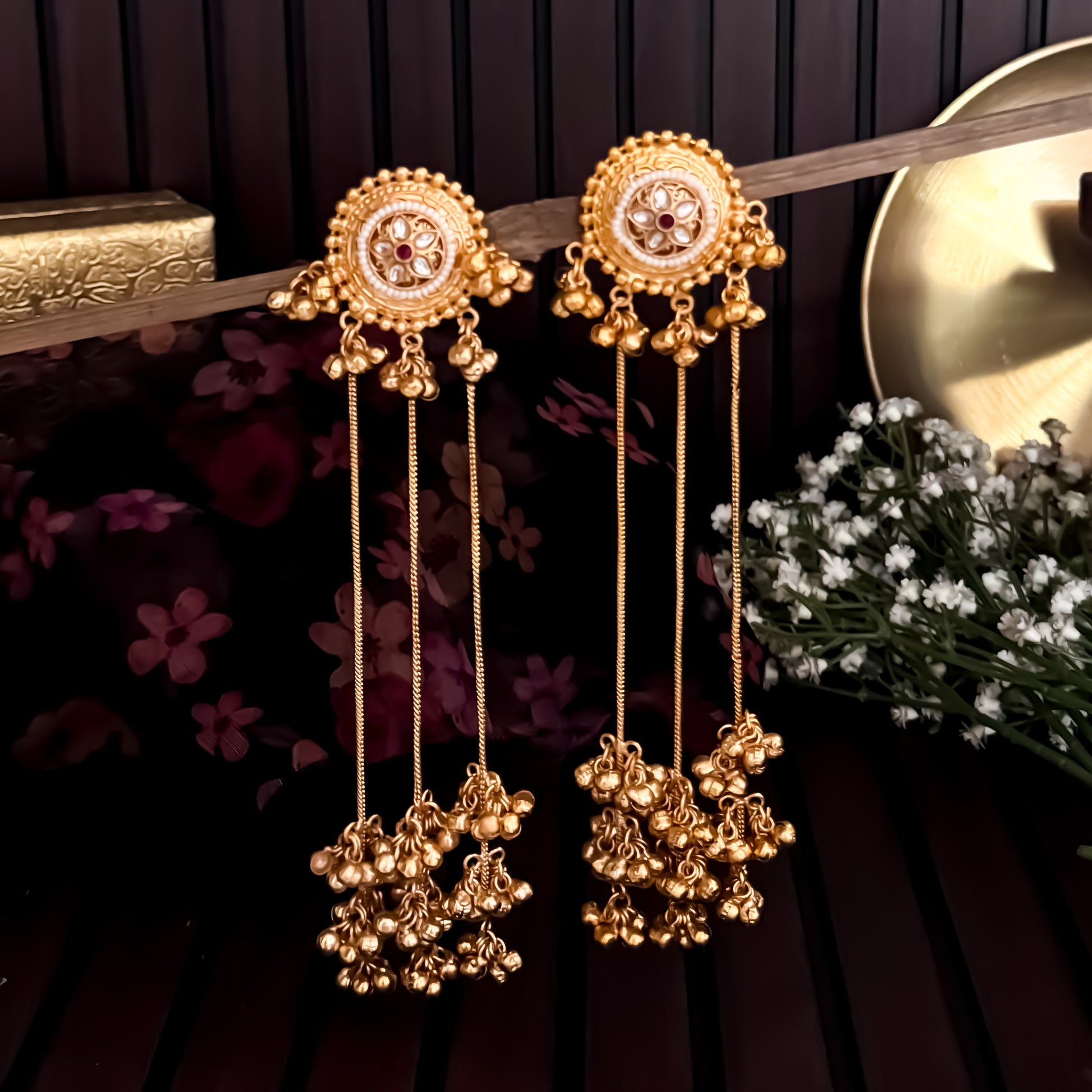 Kashi Kundan Jhumka Earrings with Sahara/Earchains - Golden