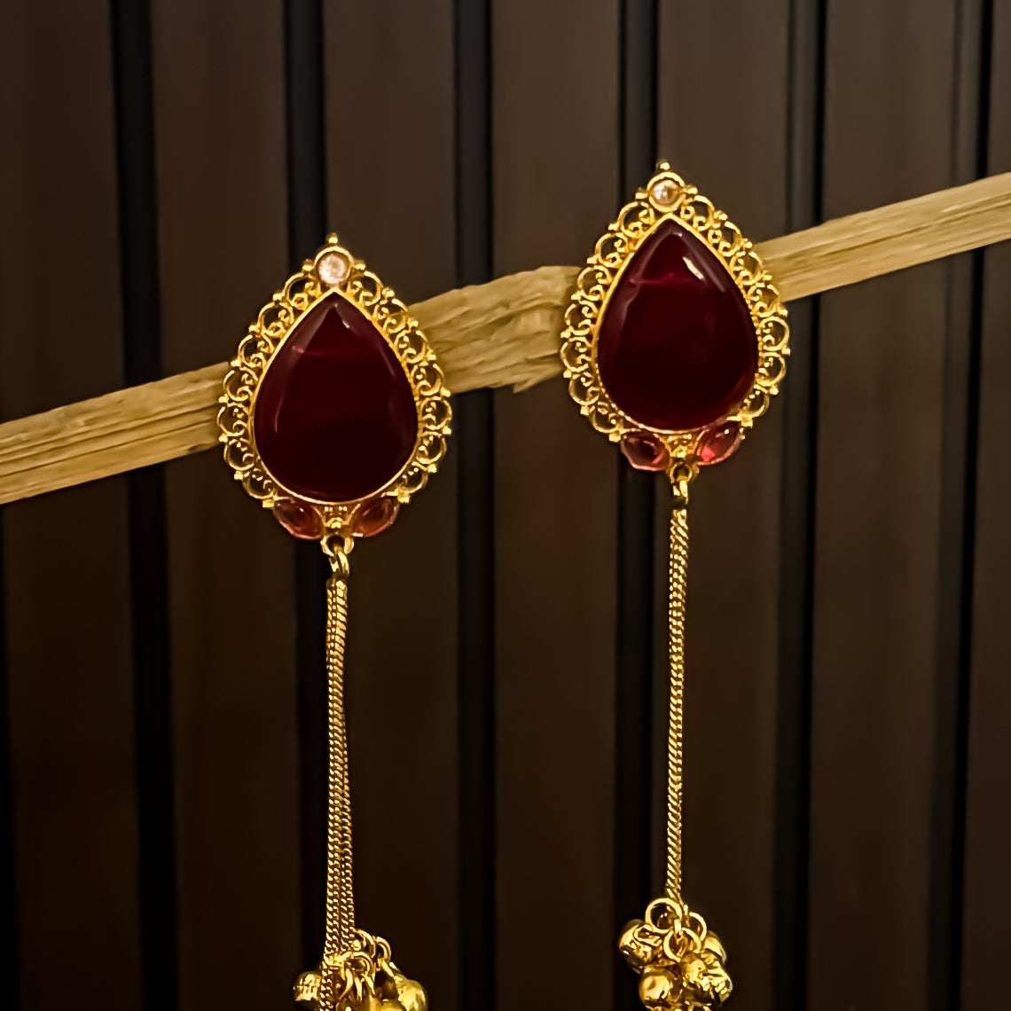Oshin Kashmiri Dehjoor Ghunghroo Earrings - Maroon