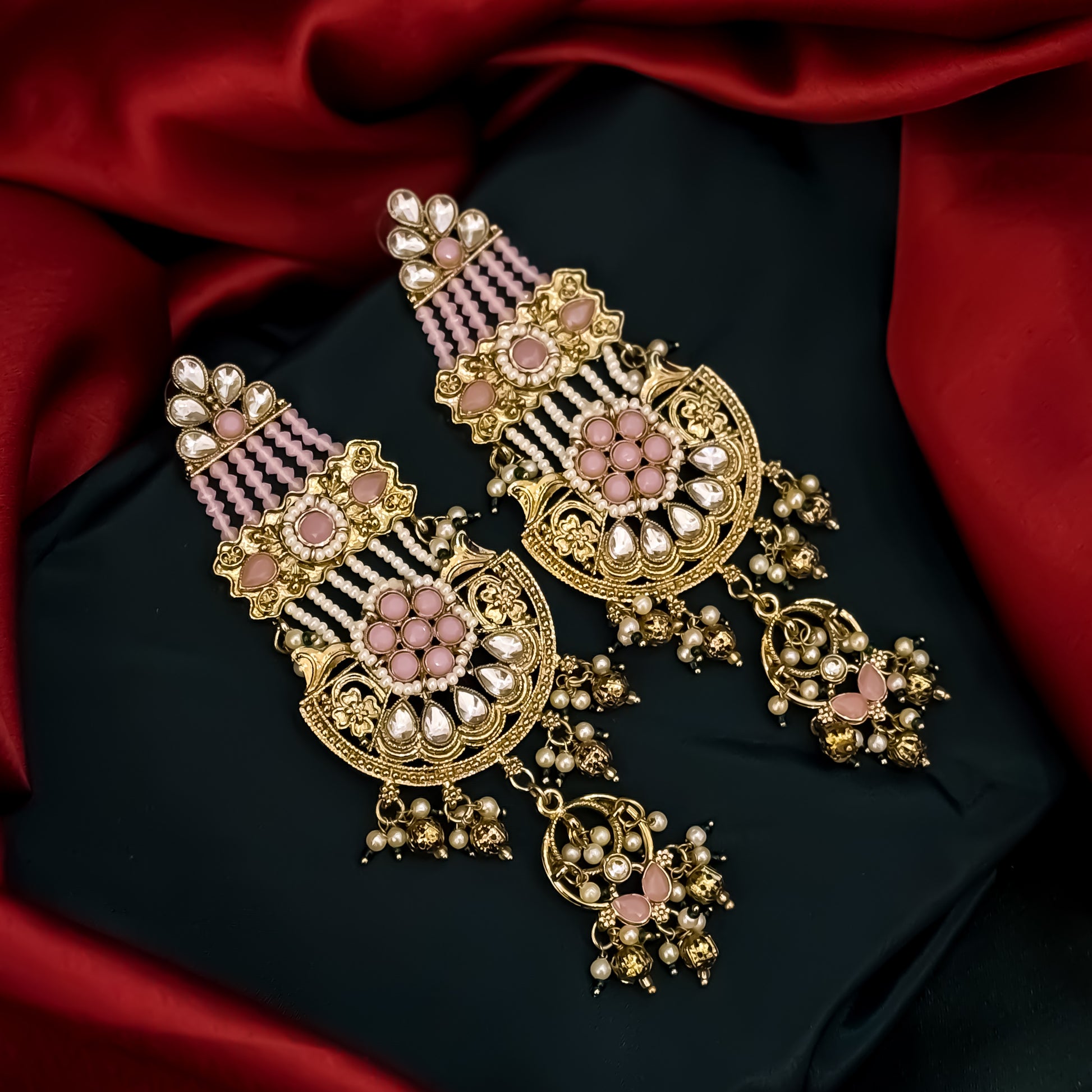 Raaj Rani Fusion Chandbali Earrings - Baby Pink