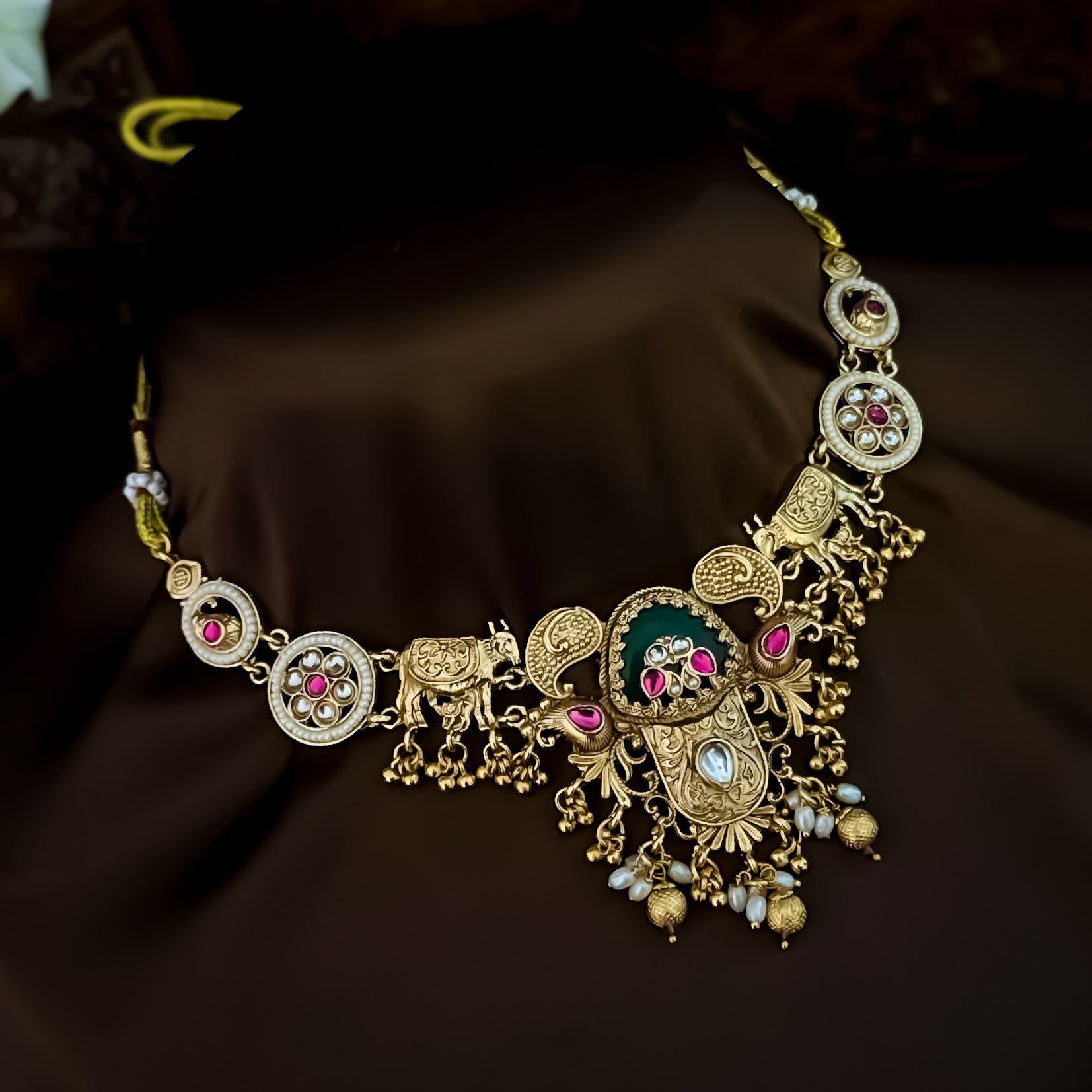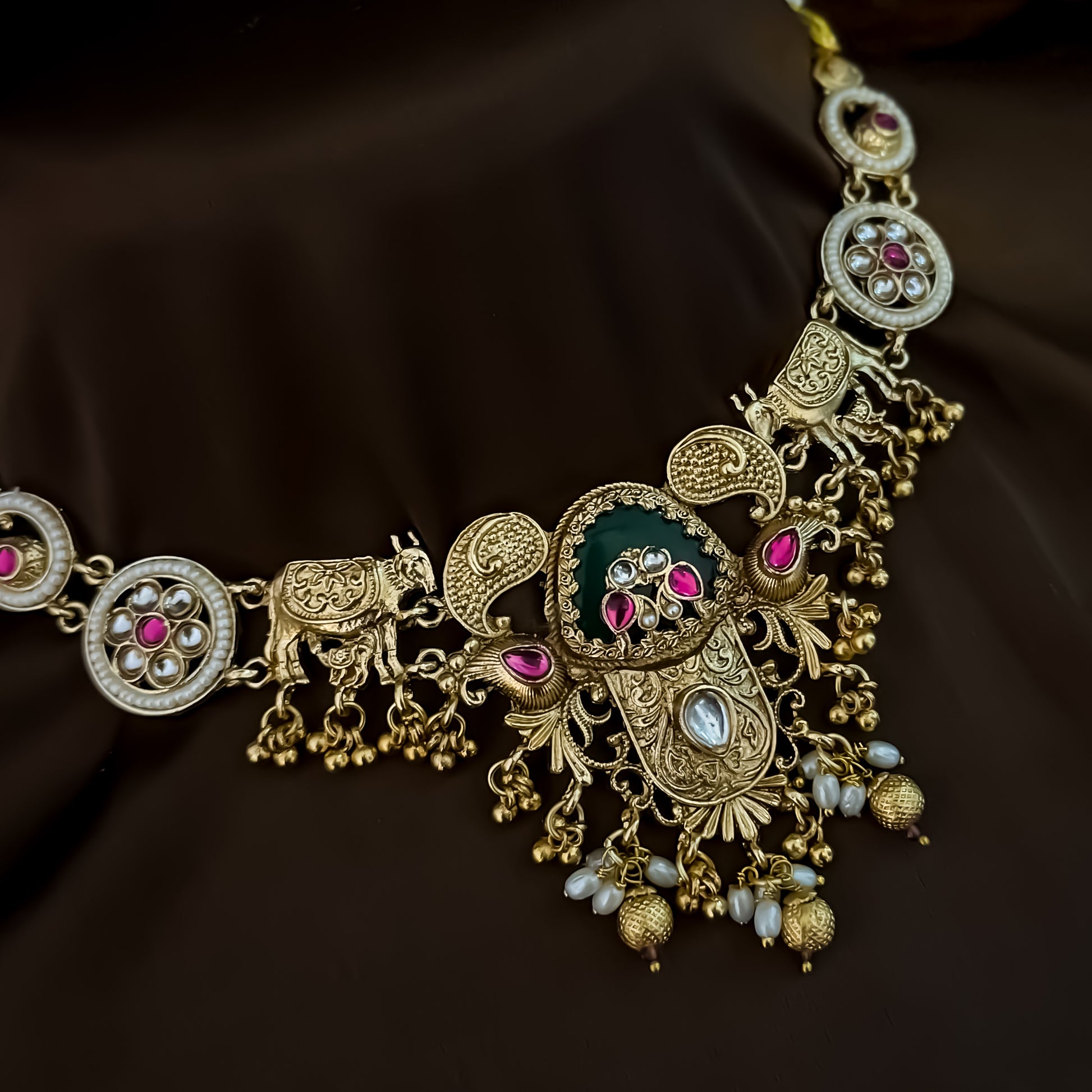 Rasina Heritage Rajwadi Necklace Set - Pink & Green
