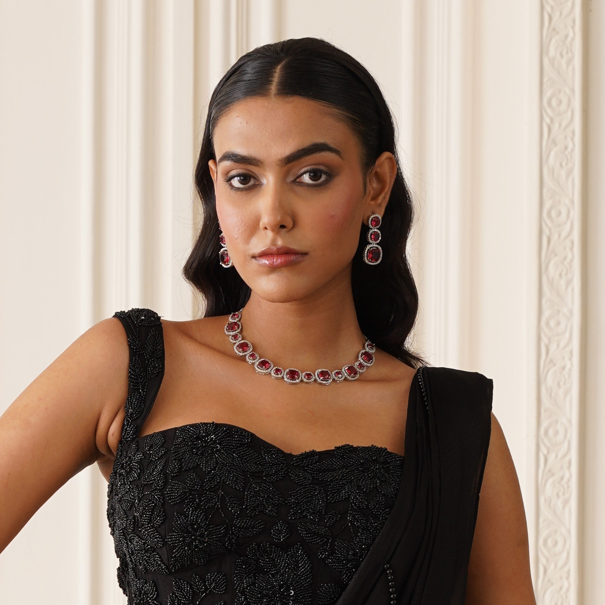 The Rhea (AD) Necklace Set is a stunning and opulent jewelry ensemble that exudes elegance and sophistication. Crafted with precision and attention to detail, this set is a perfect choice for special occasions, weddings, or any event where you want to make a statement. The base material is likely to be of high quality, often sterling silver or a similar precious metal, to ensure durability and a radiant finish.