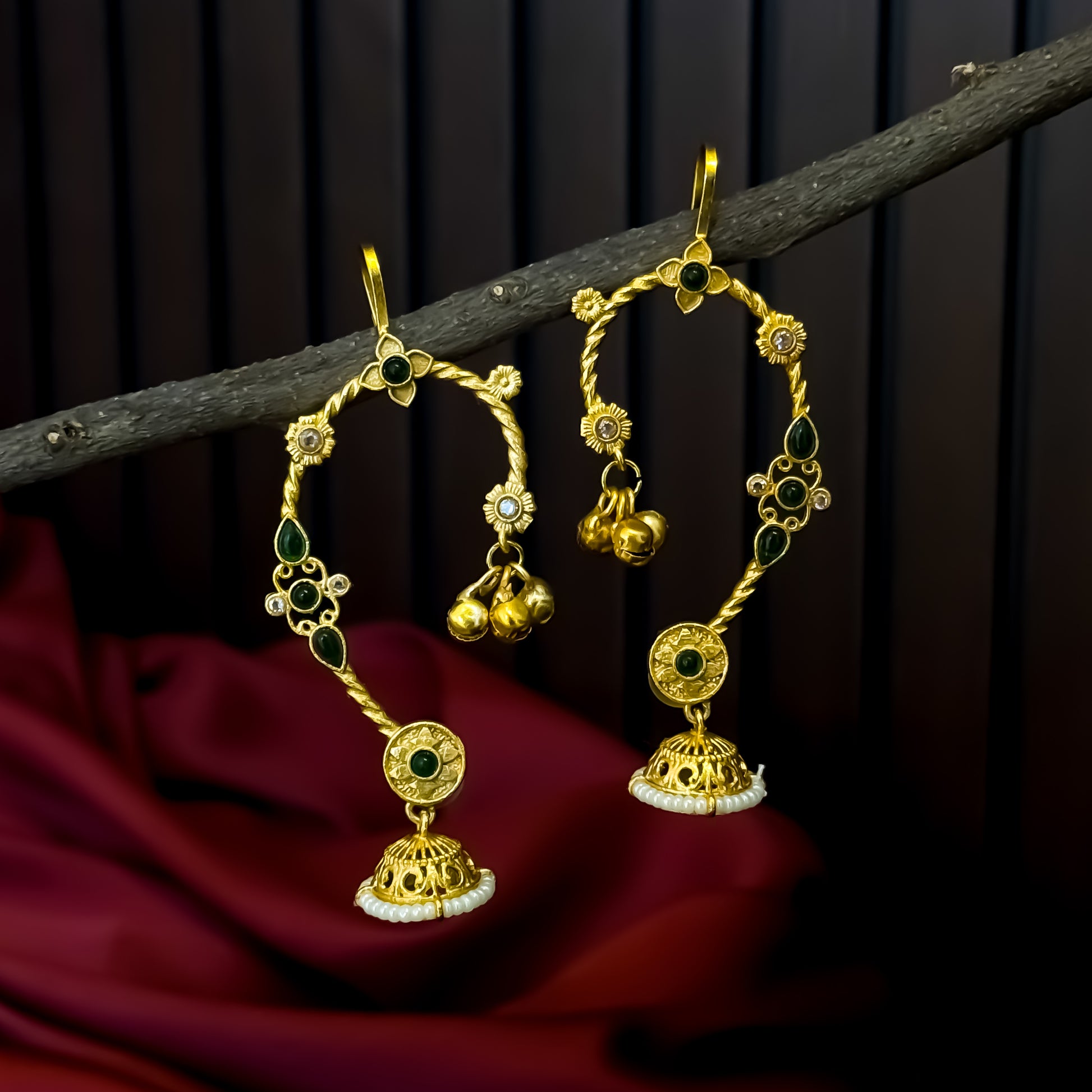 Rutuja Premium Kashmiri Brass Earcuff Earrings - Green