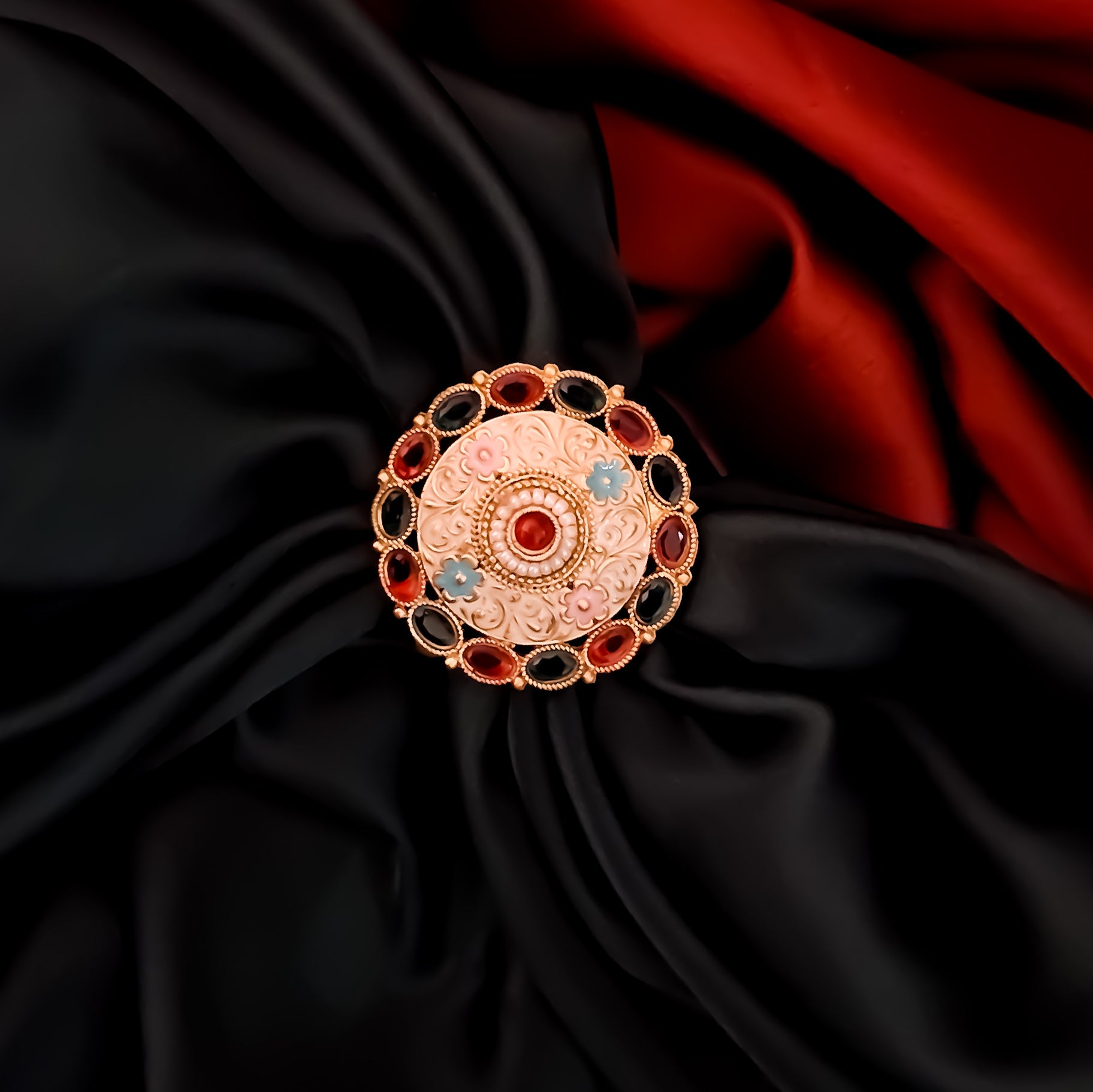 A timeless beauty crafted with elegance, this ring features a delicate base adorned with sparkling handset Kundan work. Its minimal yet regal design makes it the perfect pick for both festive occasions and everyday ethnic styling.