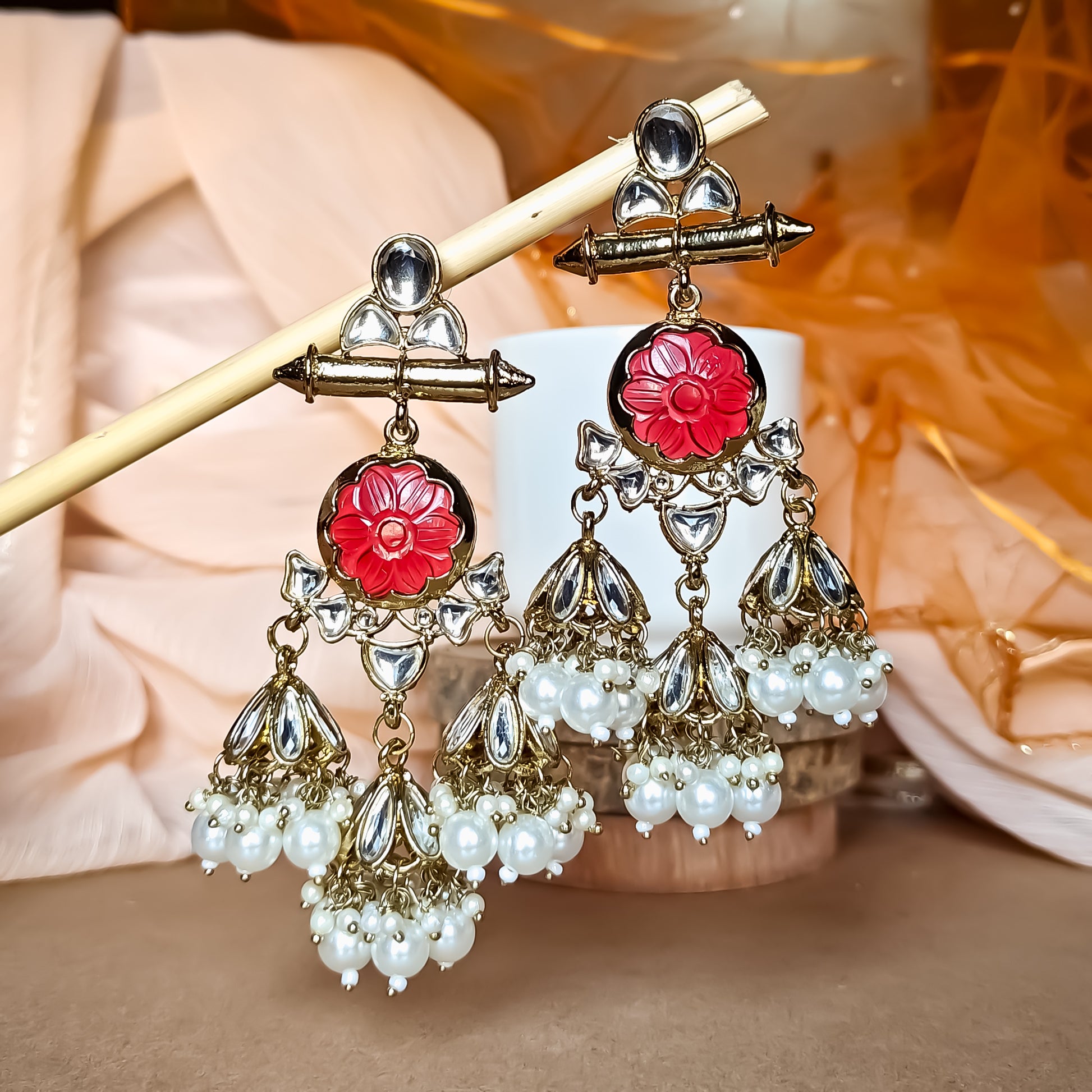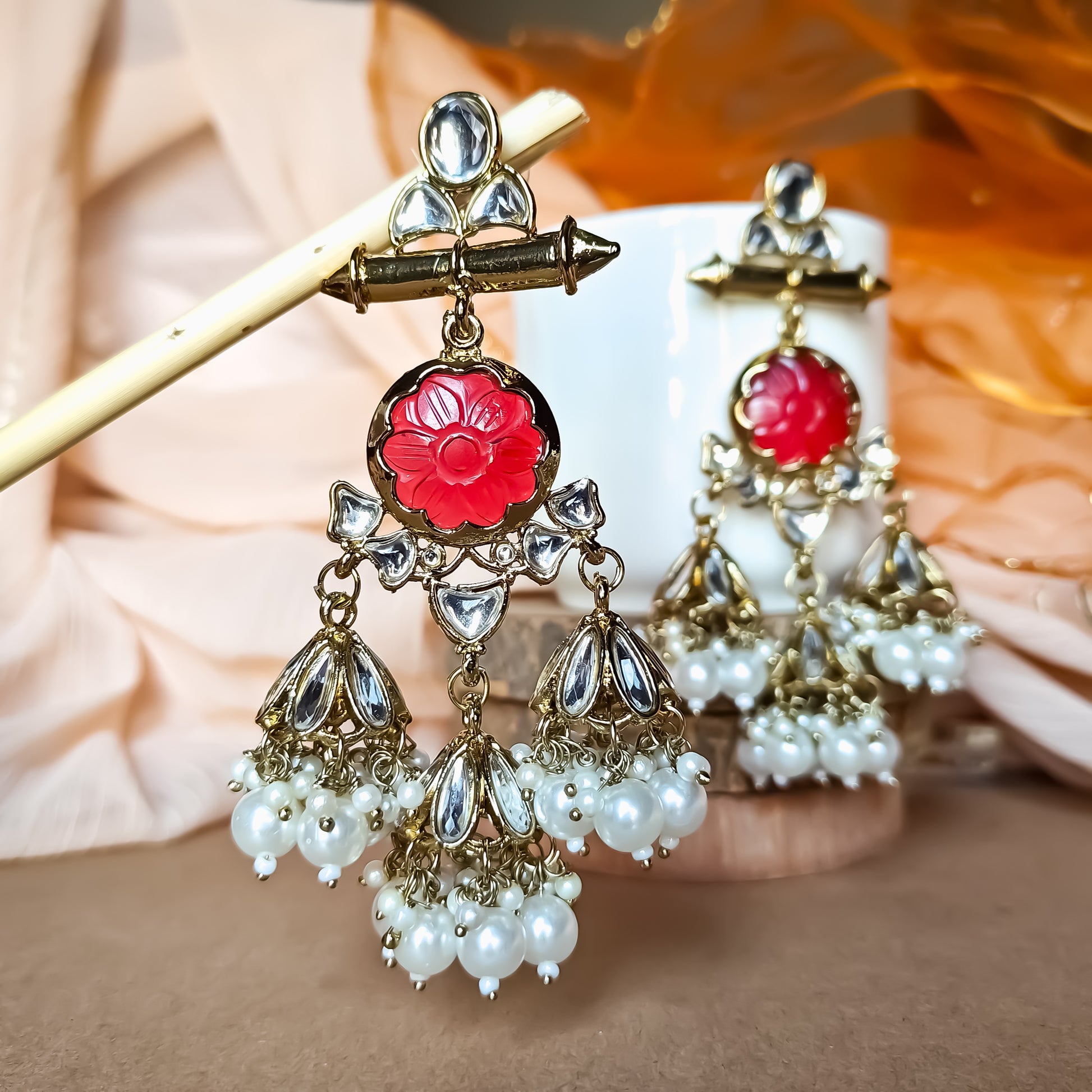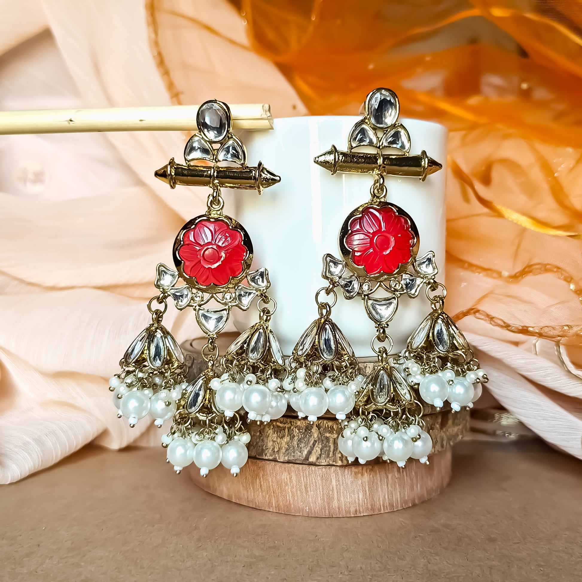 Sayani Chandbali Jhumka Earrings- Red