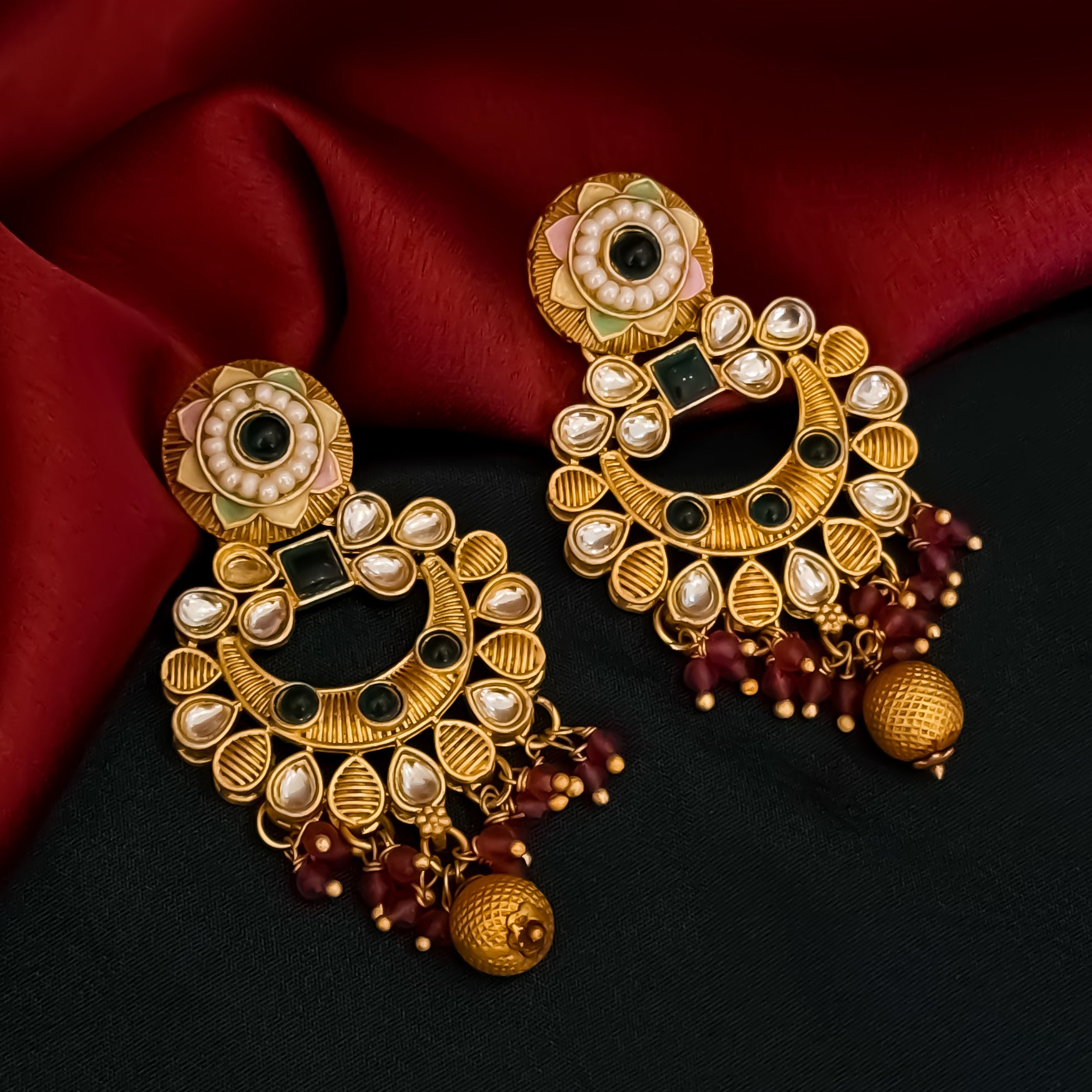 Deepika Inspired Jadau Chandbali Earring - Golden