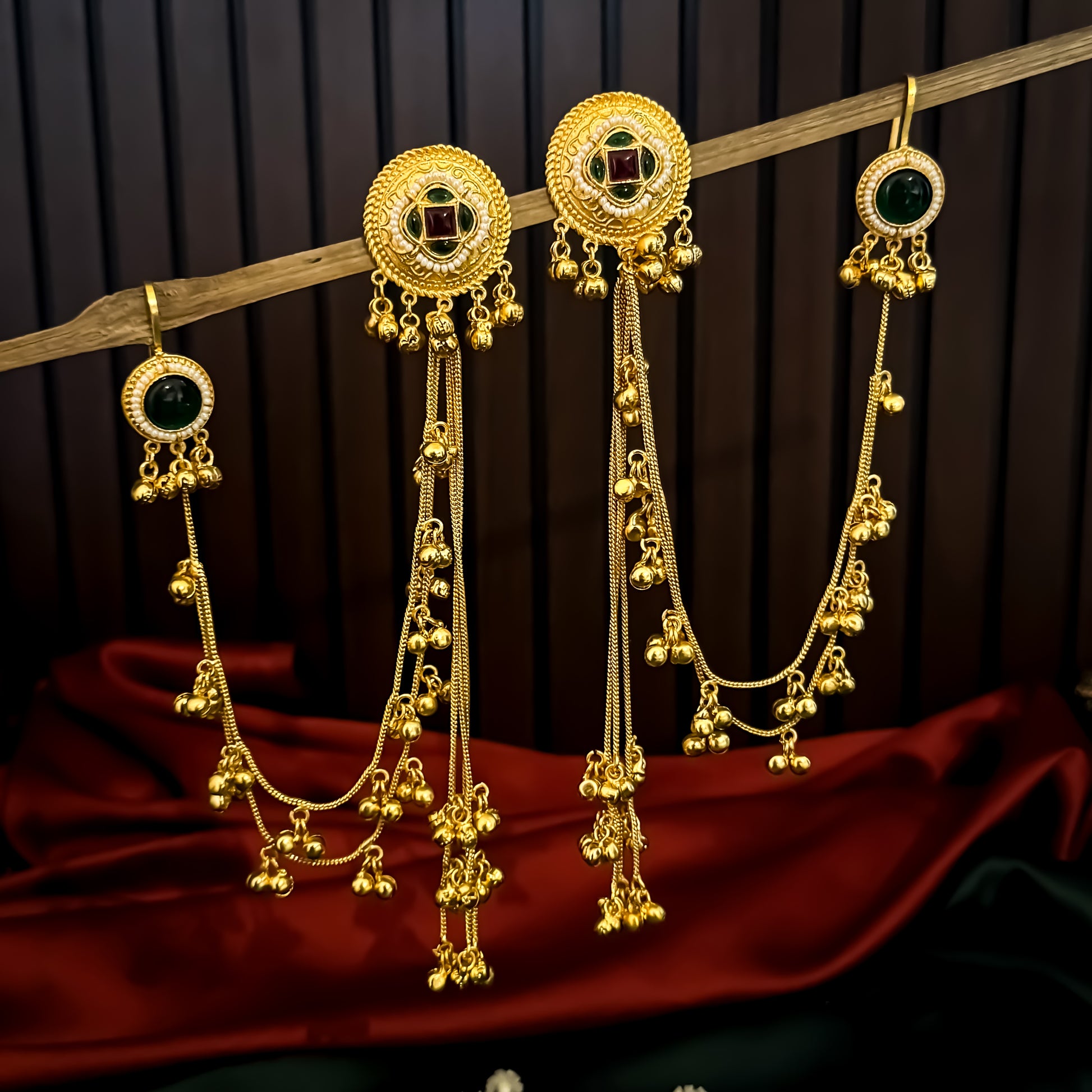 Vrikshika Premium Kashmiri Brass Ghungroo Earrings - Ruby