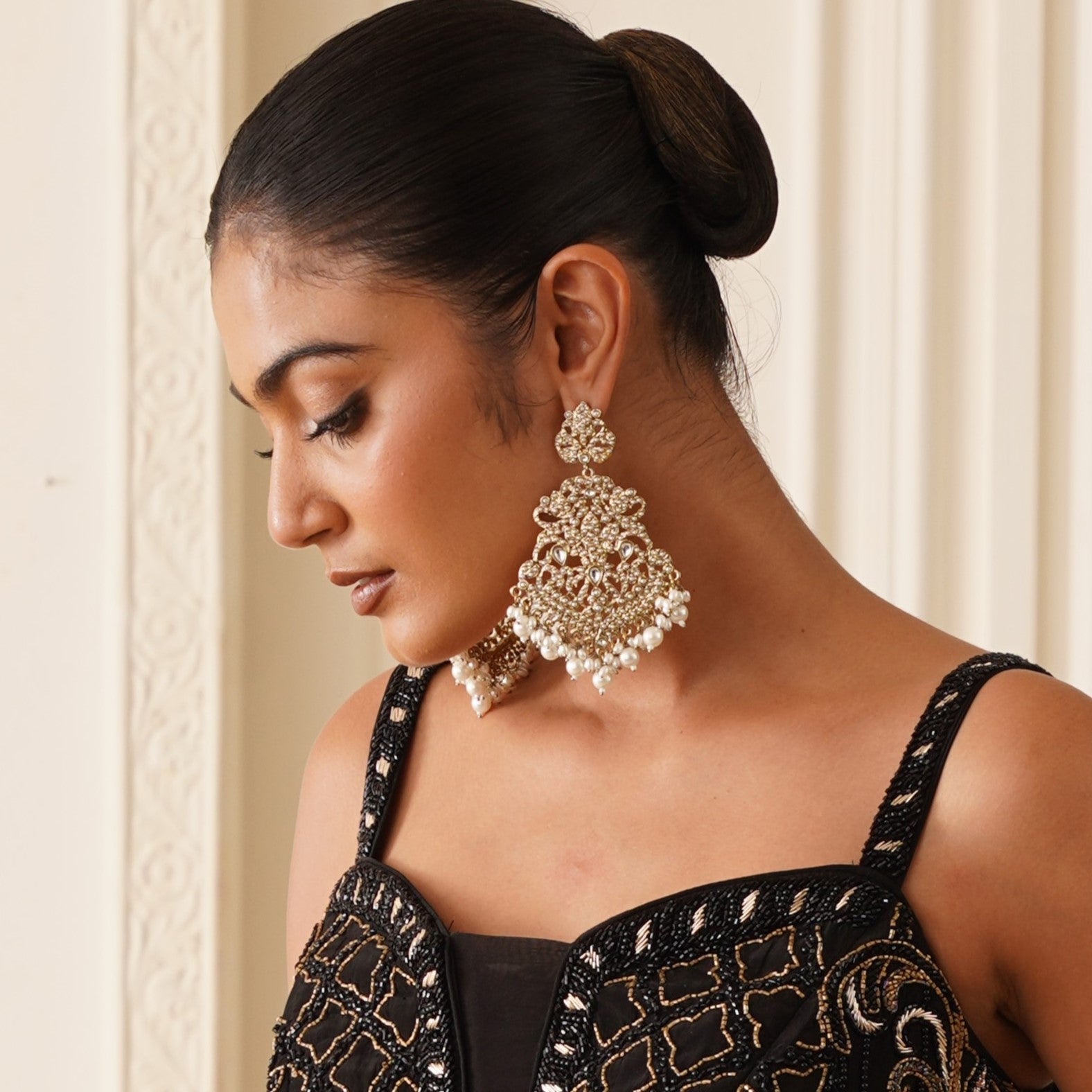 Kashi Kundan Jhumka Earrings with Sahara/Earchains - Golden