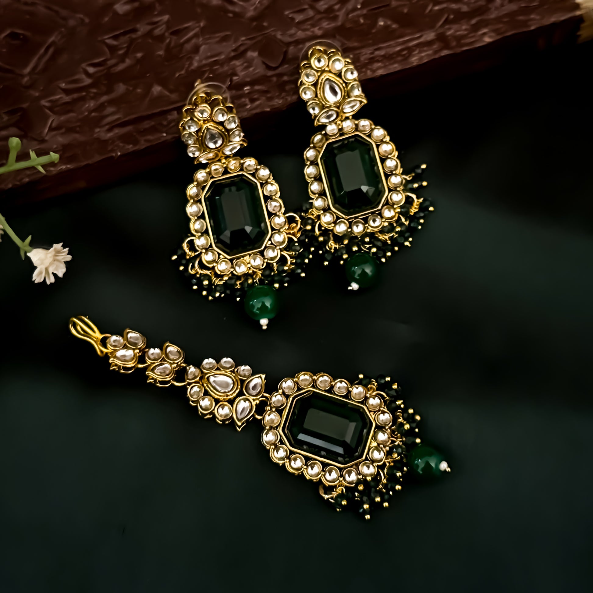 Jayati Kundan Pearl Earrings - Green