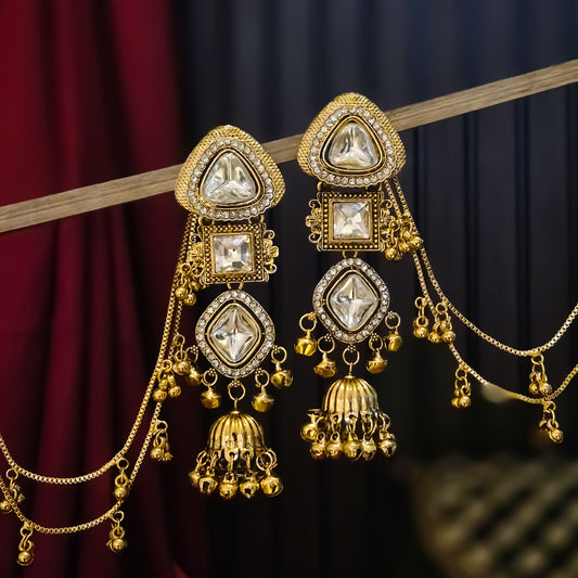 Kashi Kundan Jhumka Earrings with Sahara/Earchains - Golden