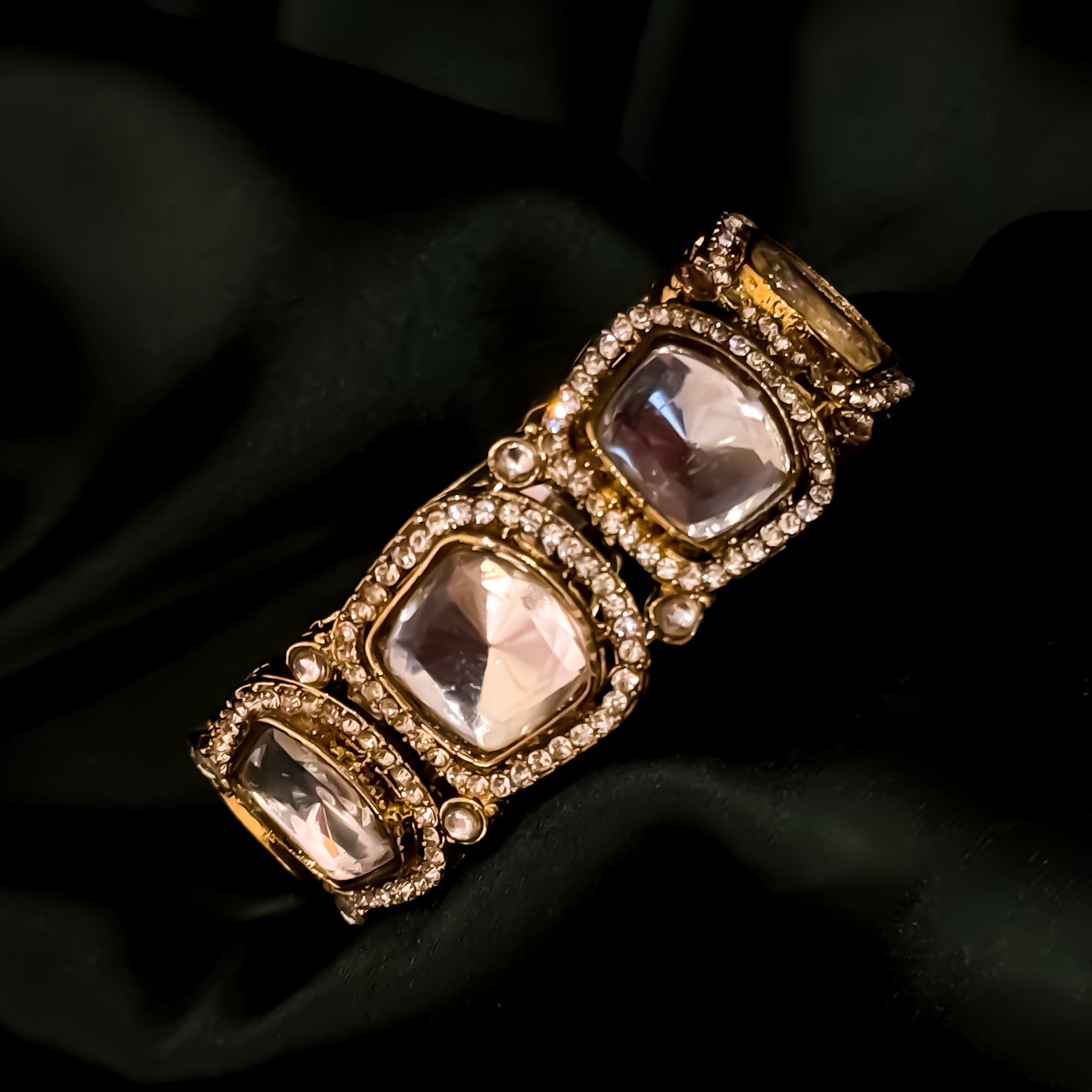 Add a royal charm to your look with our exquisite AD Kundan Adjustable Bangles. Crafted with sparkling American Diamonds and elegant Kundan work, these bangles are the perfect blend of tradition and modernity.