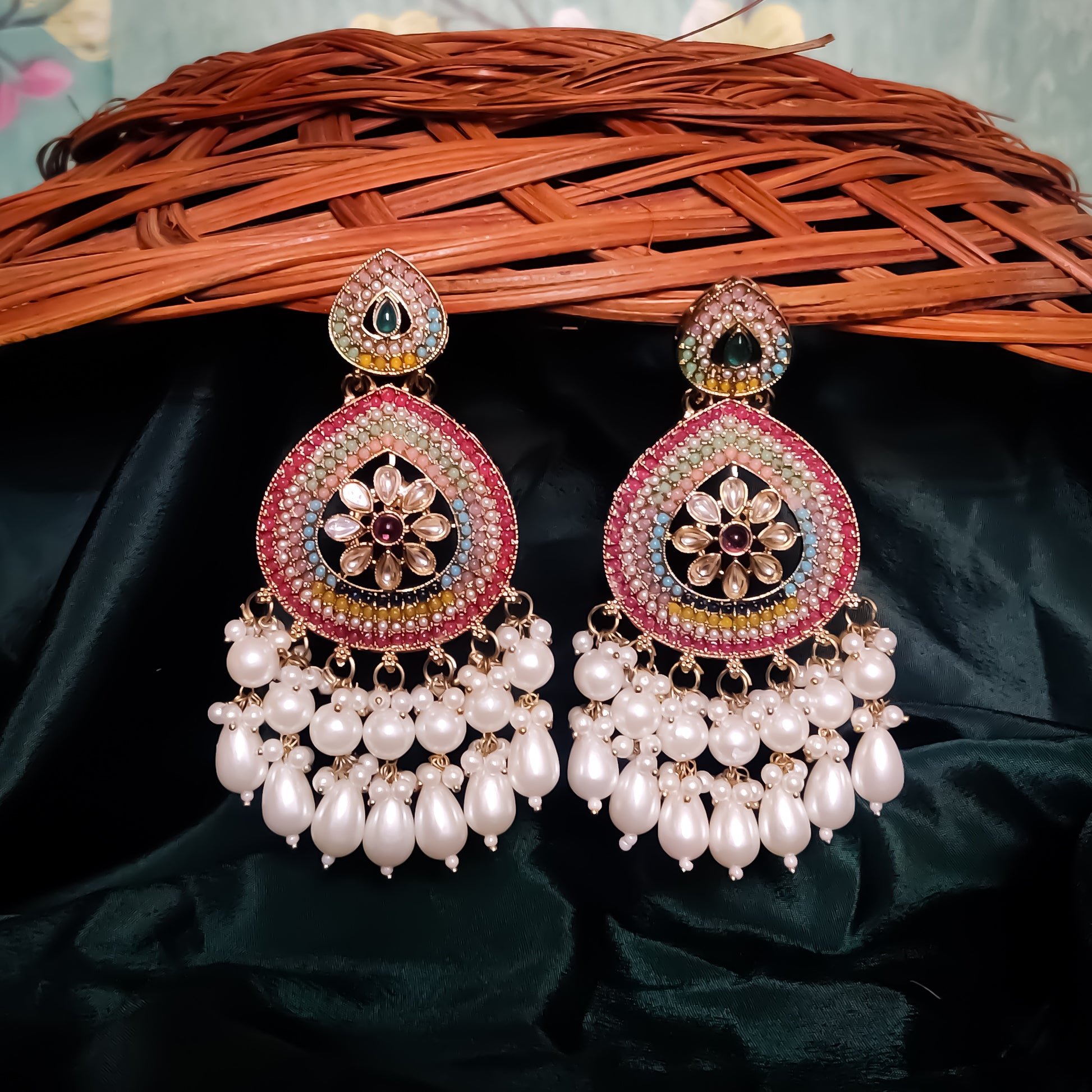 Lasika Jadau Jhumka Earrings with Sahara/Earchains - Multi